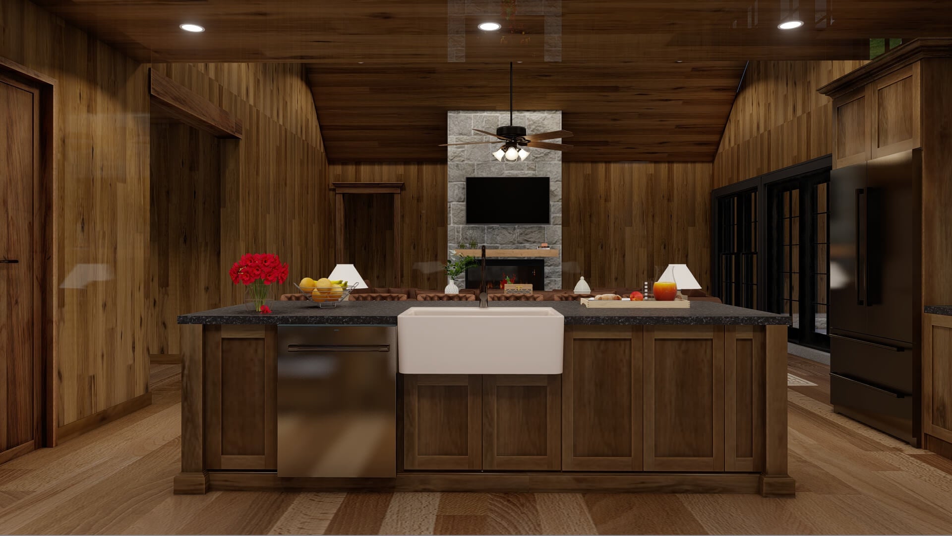 • The heart of the home is its open-concept great room and kitchen with cathedral-vaulted ceiling, which draws the eye upward and creates an expansive feel.