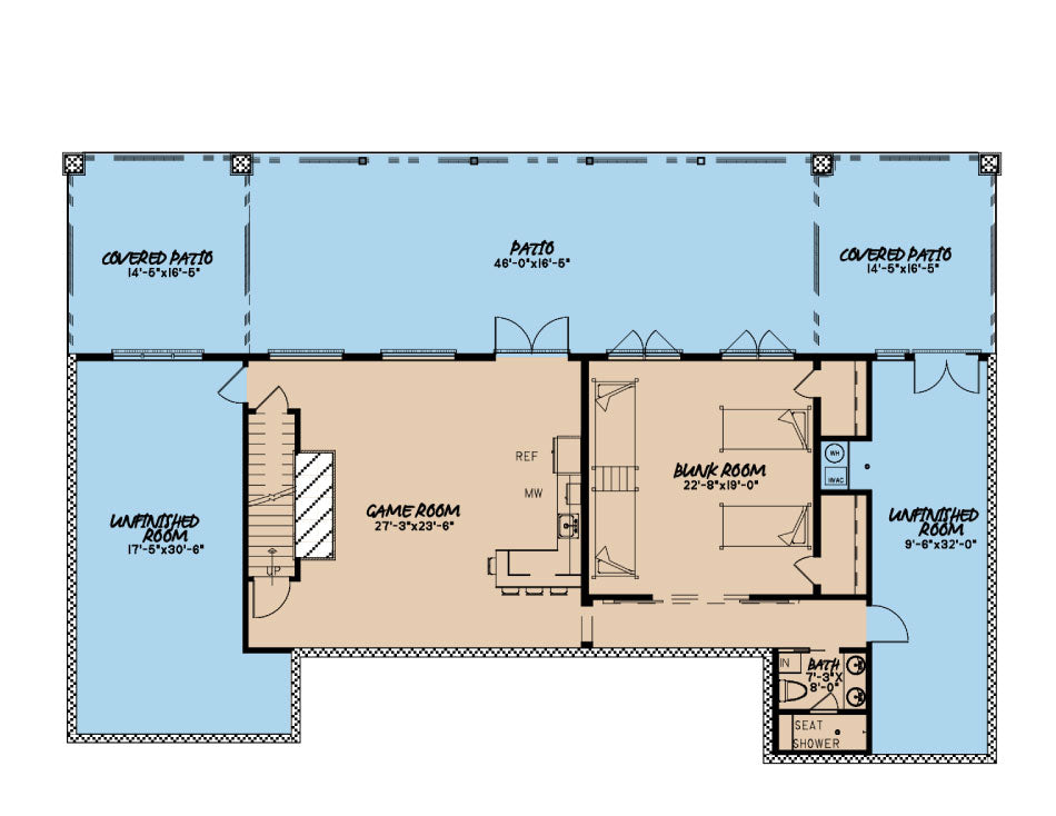 Downstairs features a game room with a built-in kitchenette, full bathroom, a bunk room, and plenty of storage. This level opens to a patio, extending the entertaining space outdoors. -