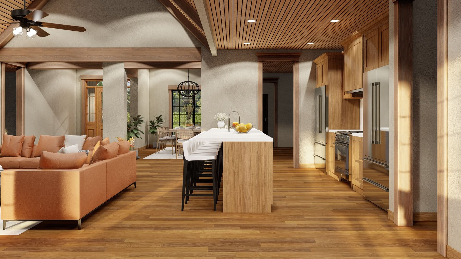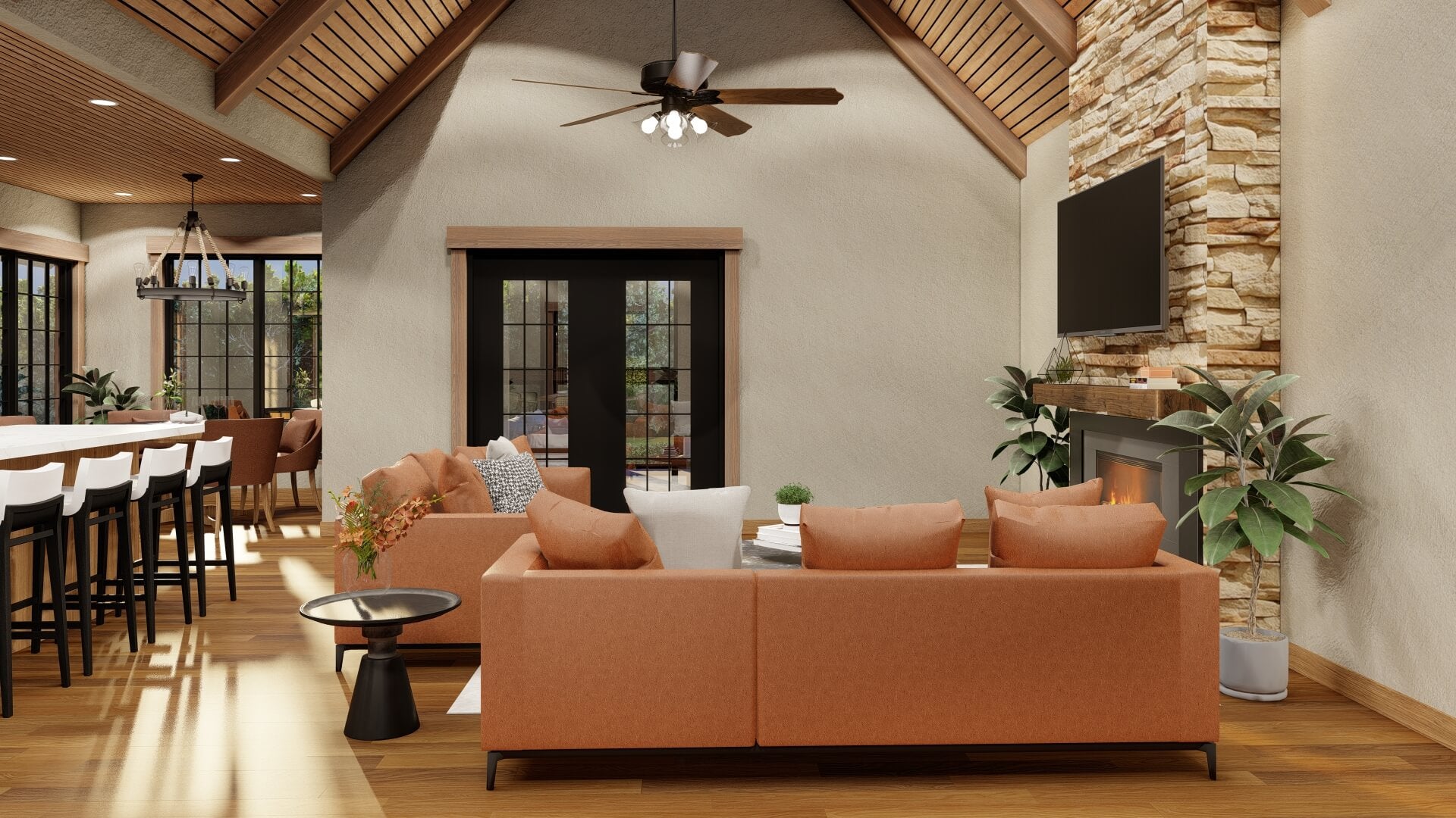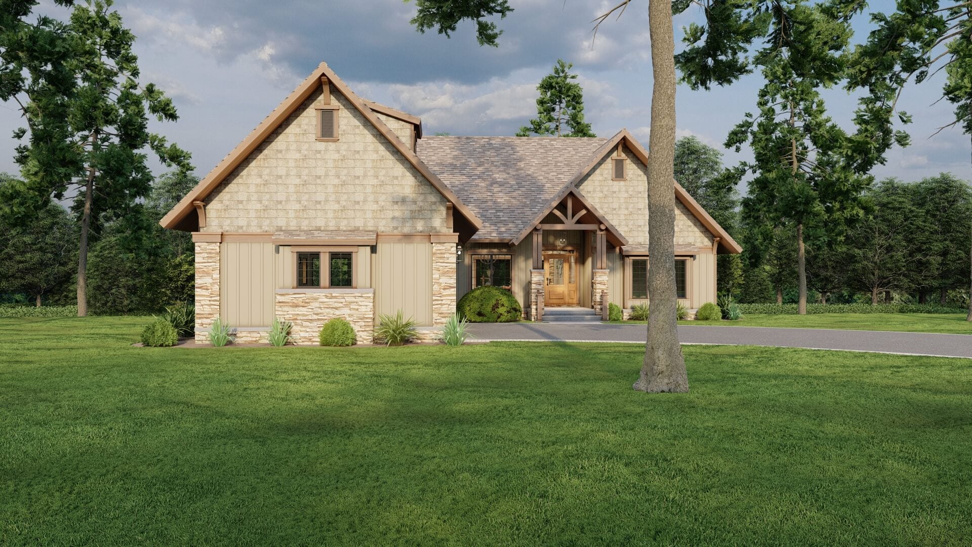 Invite nature into your everyday life with NDG 1193 Trout Run Retreat, a striking home design that blends rustic charm and modern comfort. Nestled in the American Woodlands style, this plan offers expansive living, beautiful details, and flexible spaces crafted for both entertaining and retreat.