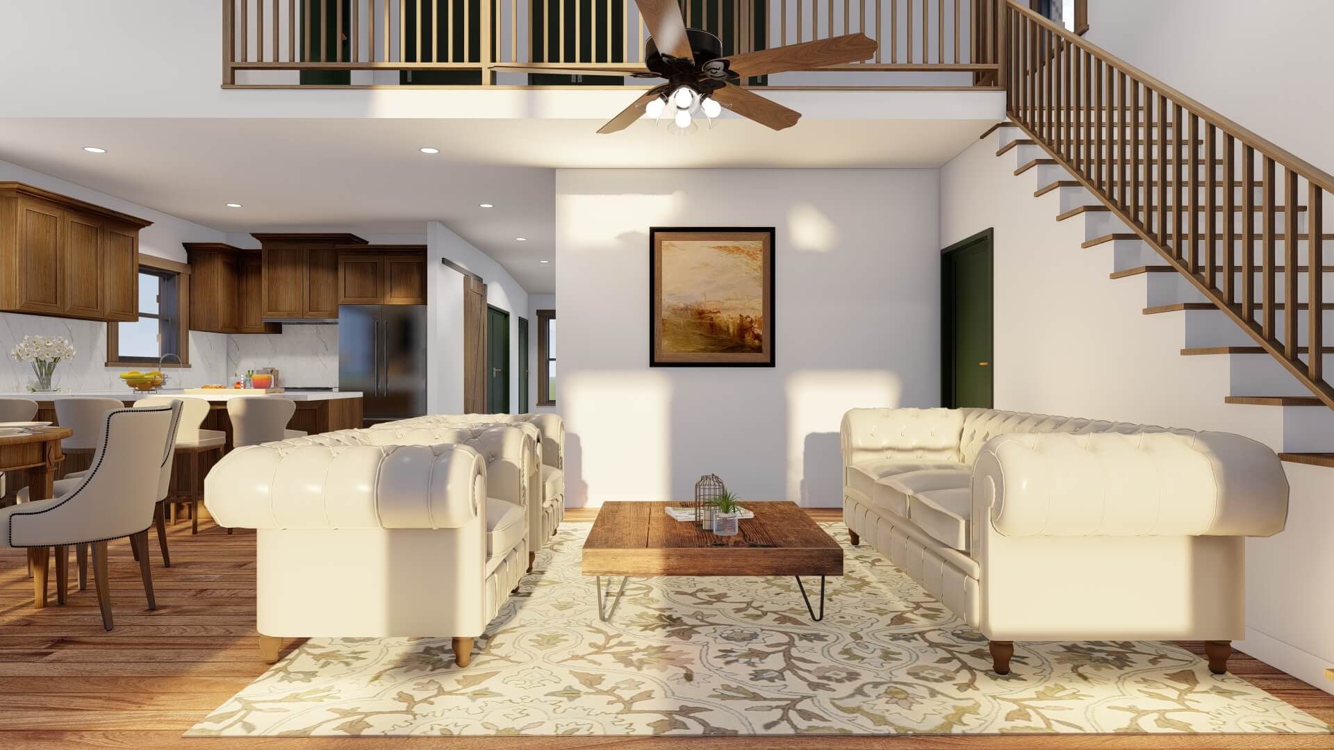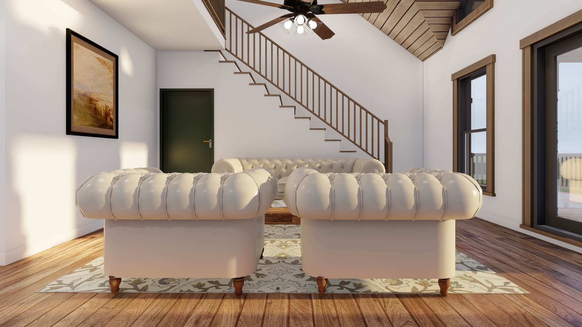 - Upstairs the layout accommodates two additional private bedrooms and a full bath — giving guests or family their own zone.