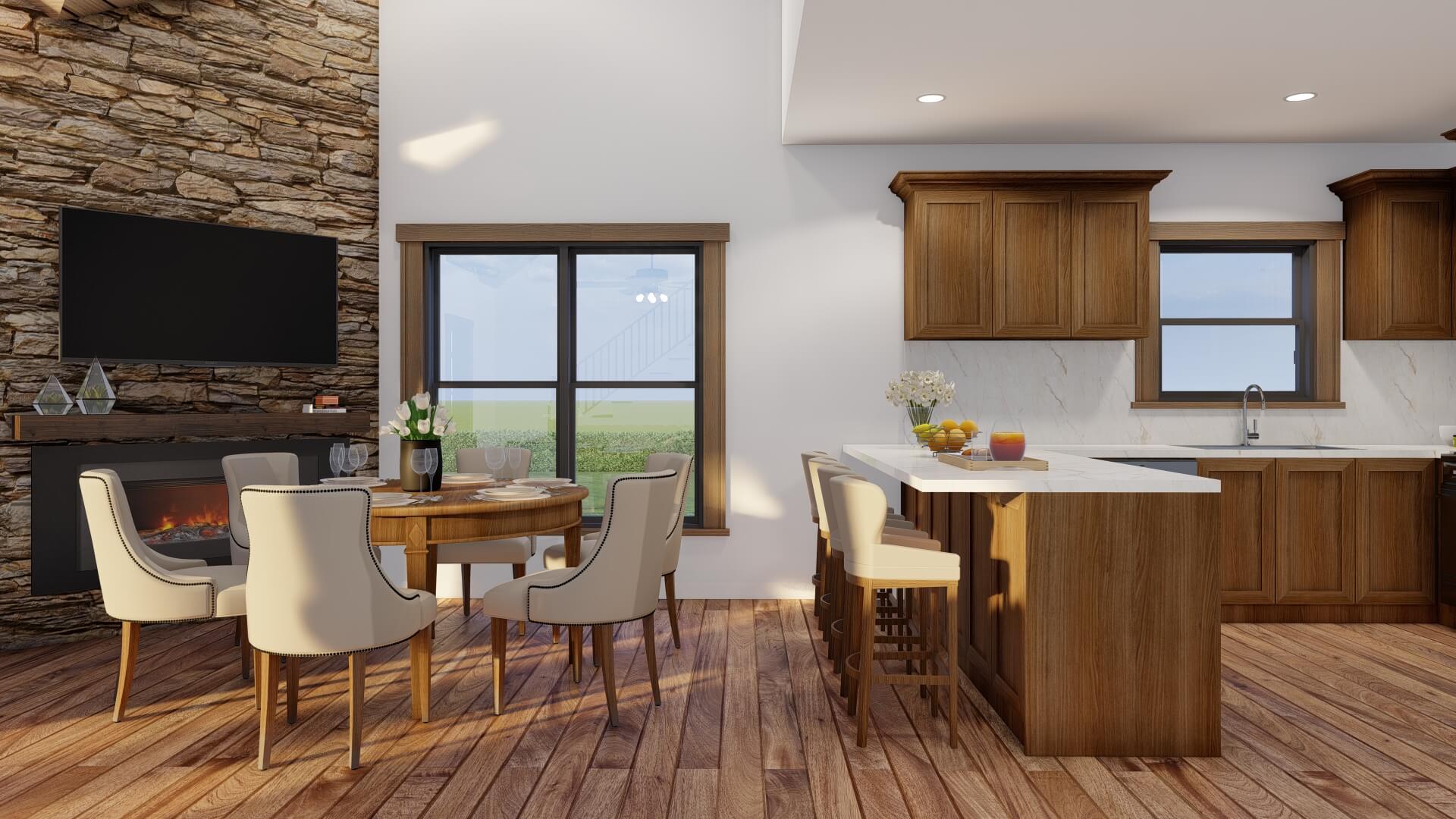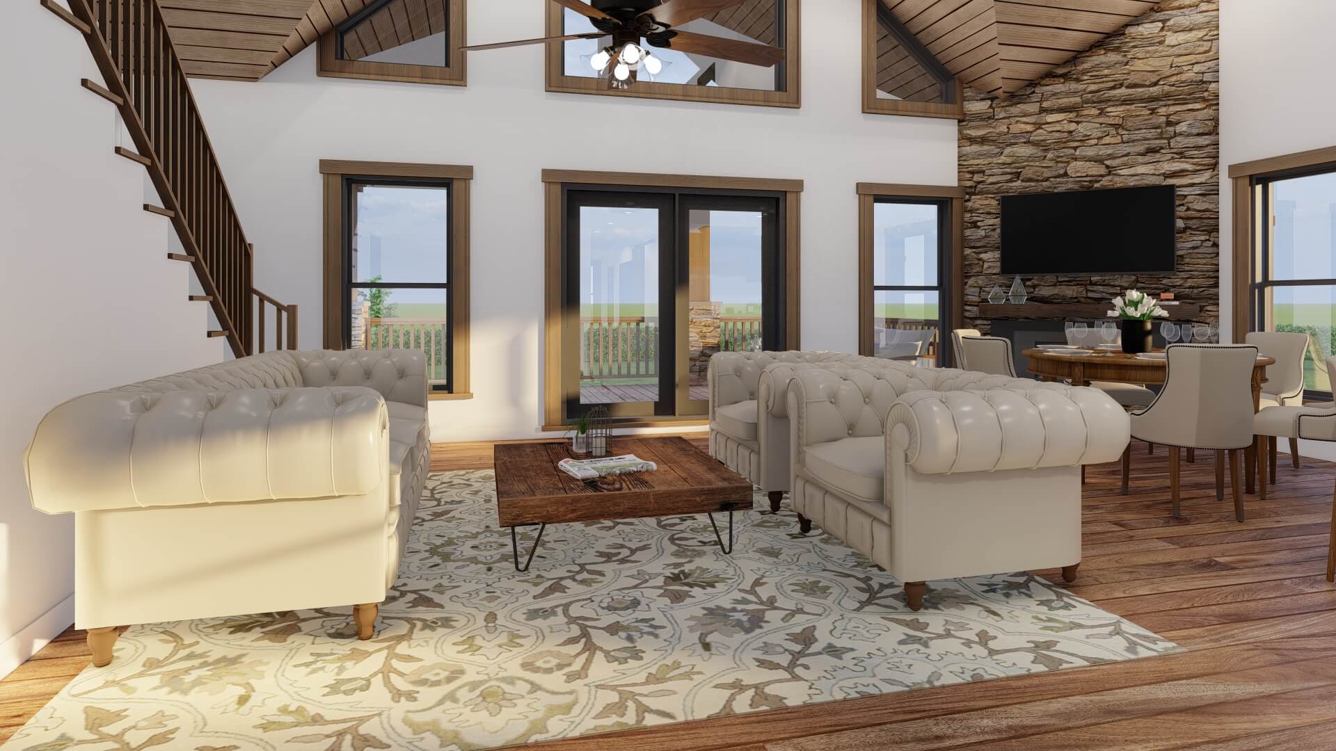 - Exterior design emphasizes cabin‑style charm: open living, a vaulted great room, and covered porch space (approx. 268 sq ft) that draws you outdoors.