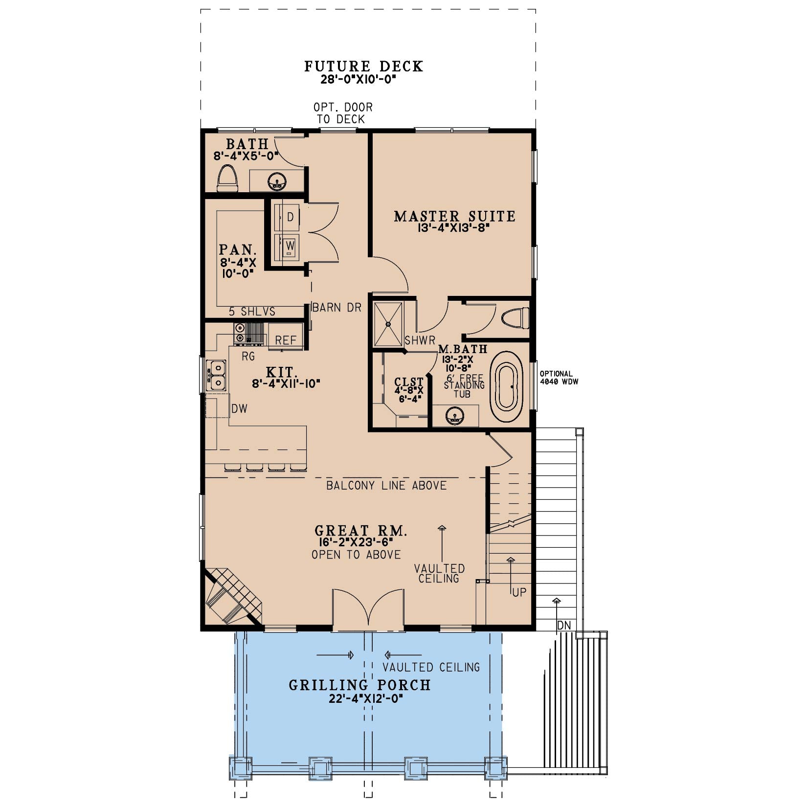 - The main floor features an open layout with vaulted ceilings in the great room, creating a spacious feel despite the modest size.