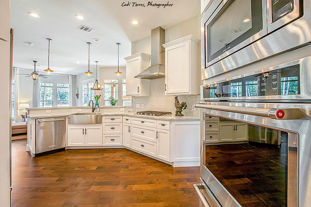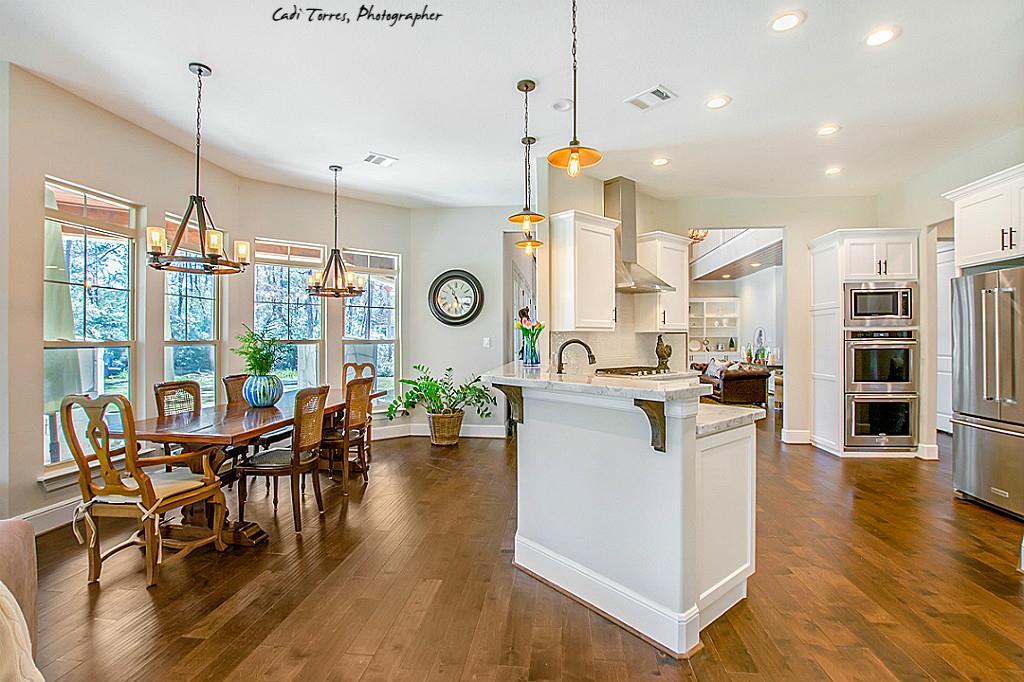 • Open kitchen with wrap-around peninsula, bar seating, breakfast nook, hearth room, and large walk-in pantry, ideal for everyday living and entertaining