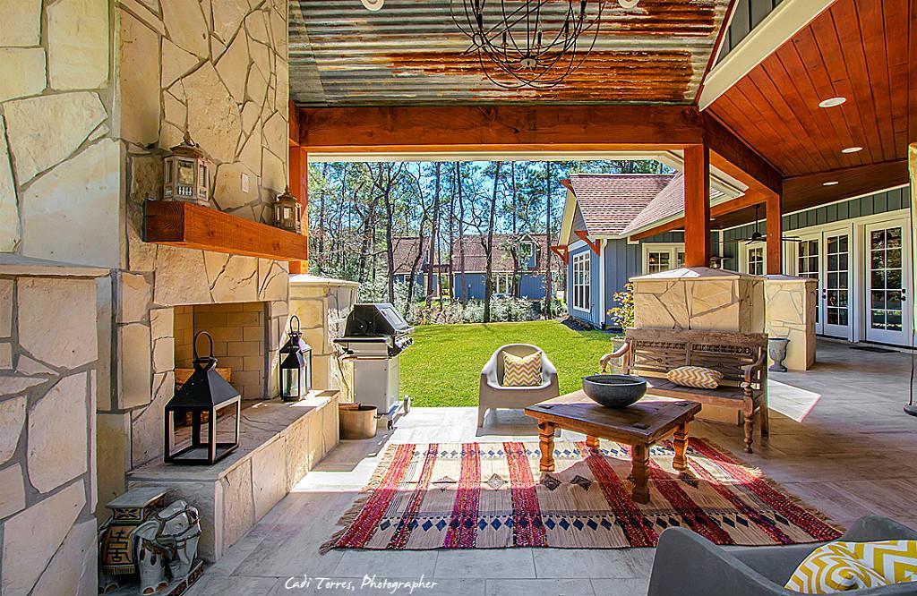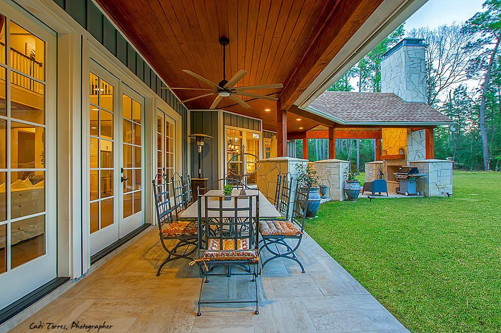 • Covered grilling porch with fireplace, perfect for outdoor dining and entertaining