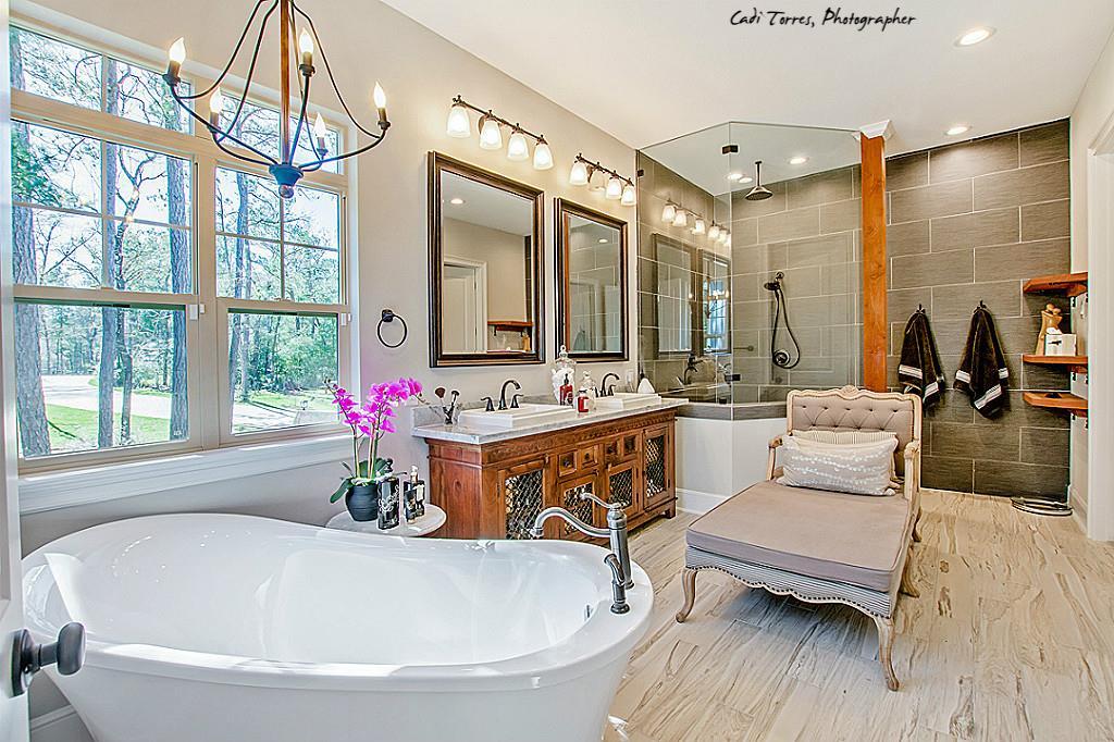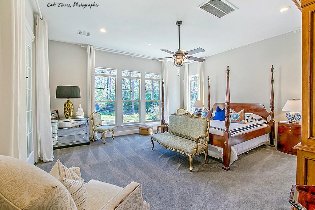 • Luxurious master suite with natural light, direct access to the grilling porch, dual walk-in closets, whirlpool tub, corner glass shower, double vanities, and linen storage, creating a private retreat
