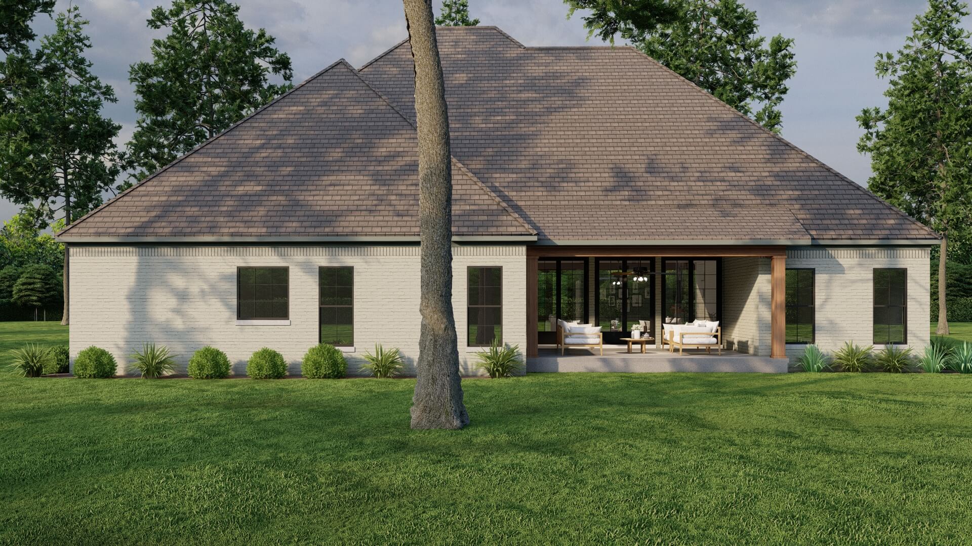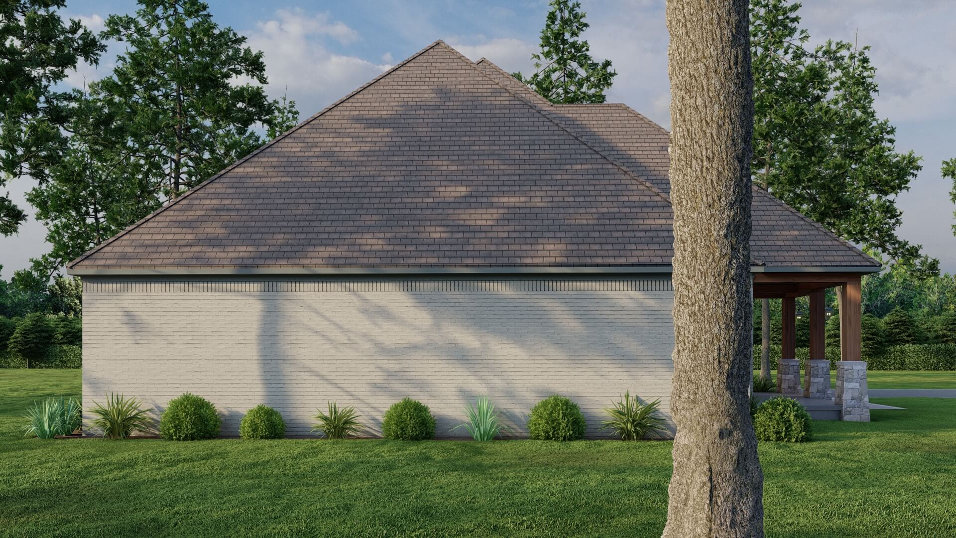 • Efficient footprint for a wide lot, yet still delivers luxury features and generous outdoor living space (porch area approximately 492 sq ft).