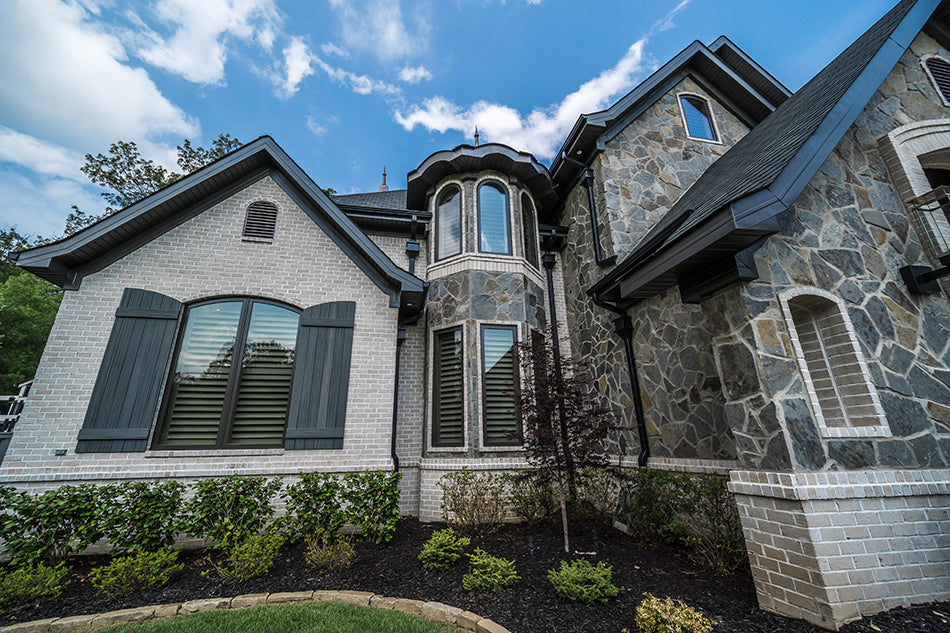 - The exterior is richly styled in stone and brick, with complex rooflines and architectural detailing — perfect for high curb appeal and luxury ambiance.