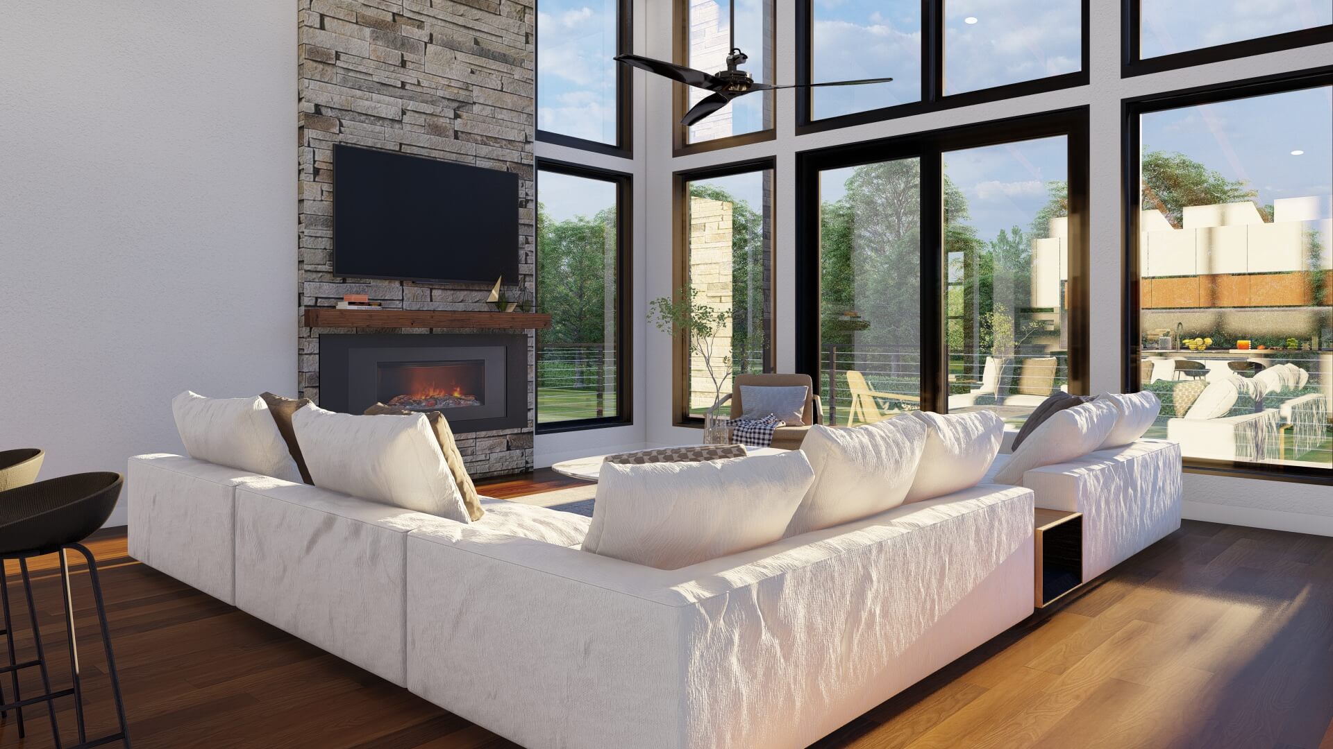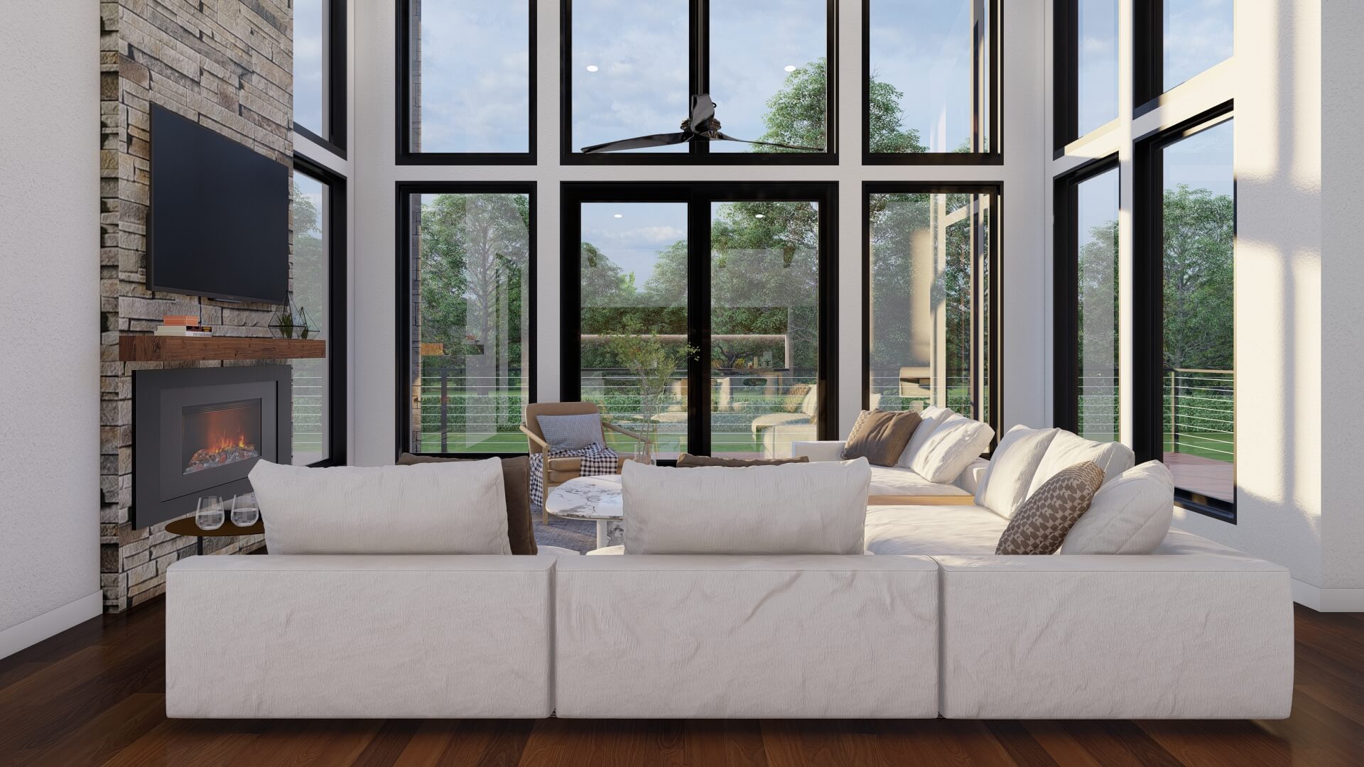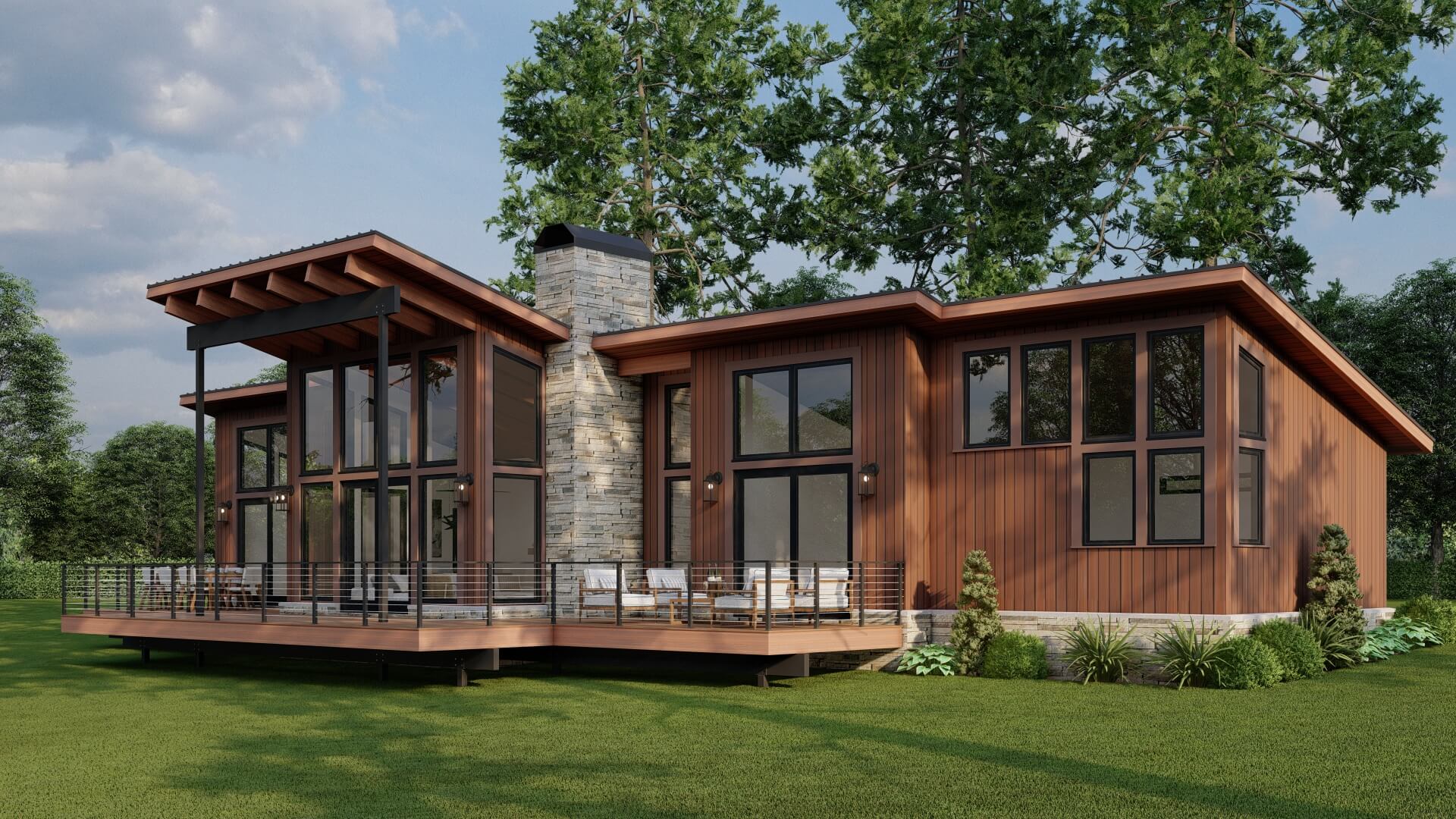 - Modern mountain architectural style, blending clean contemporary lines with rustic charm
