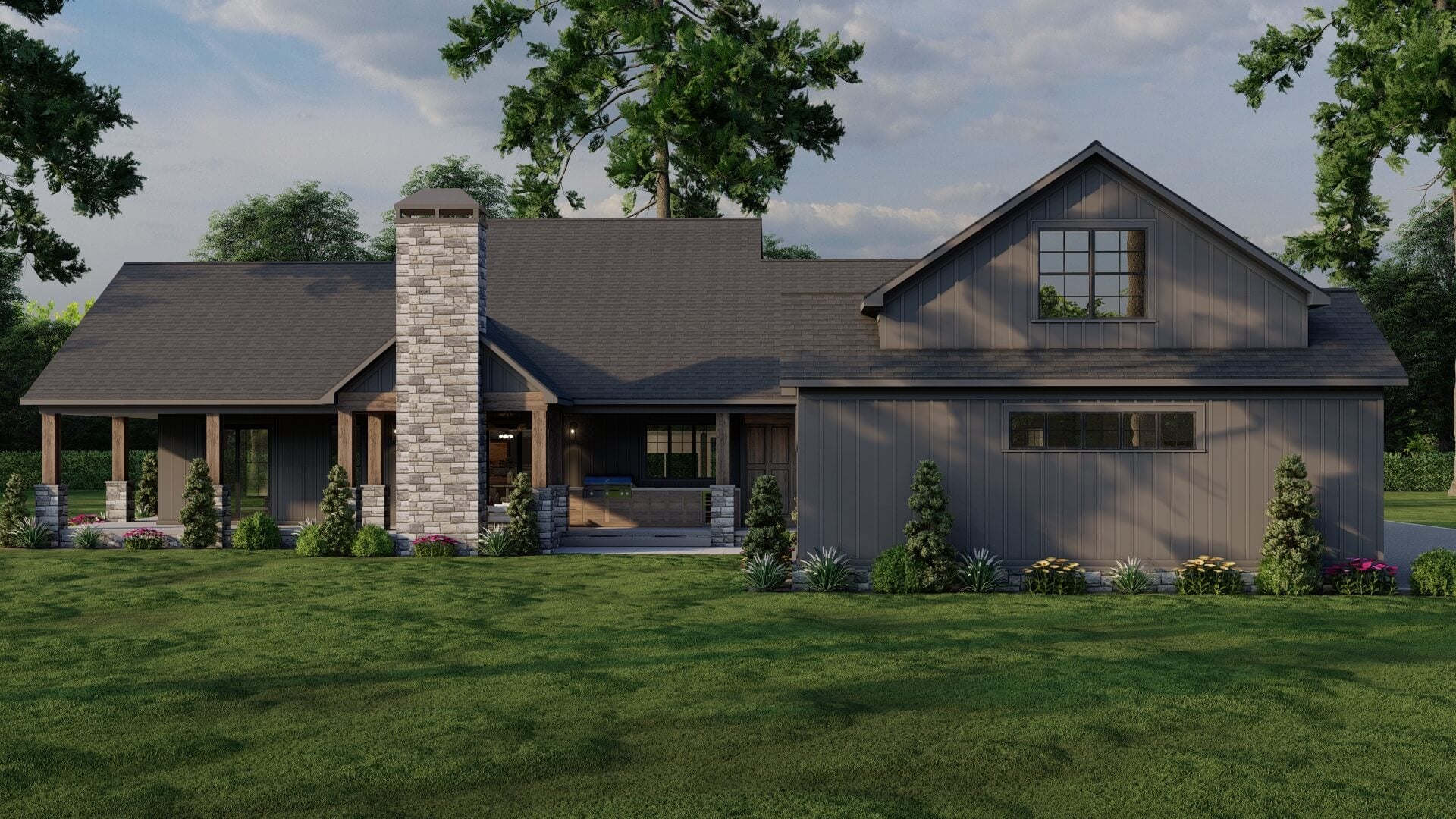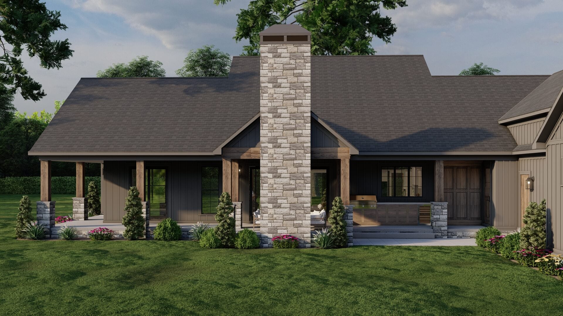 Welcome to Homestead Haven II House Plan 5435B, a refined modern farmhouse design by Nelson Design Group. This elegant single‑story home offers approximately 2,564 square feet of living space, featuring 3 bedrooms, 3 full bathrooms, plus a generous bonus room (~692 sq ft) above the garage and expansive outdoor living areas.