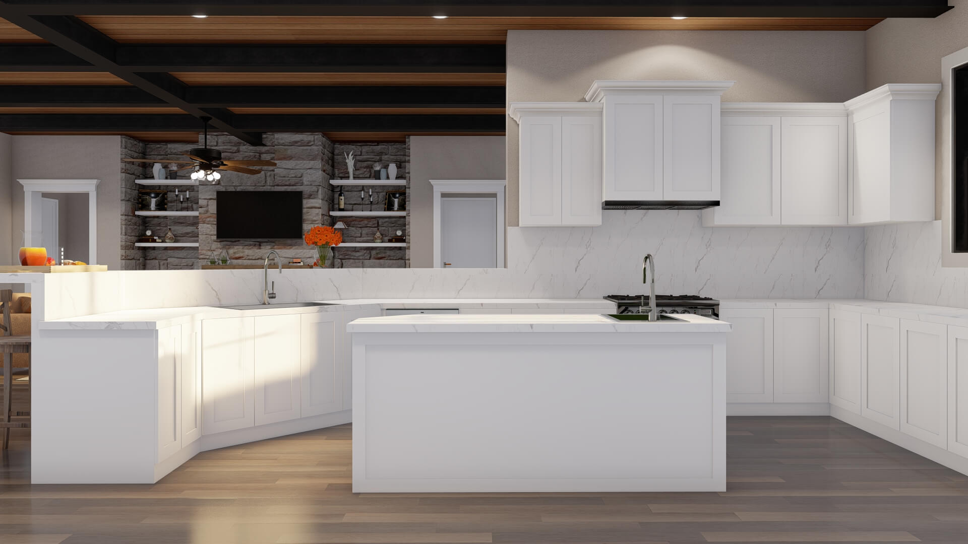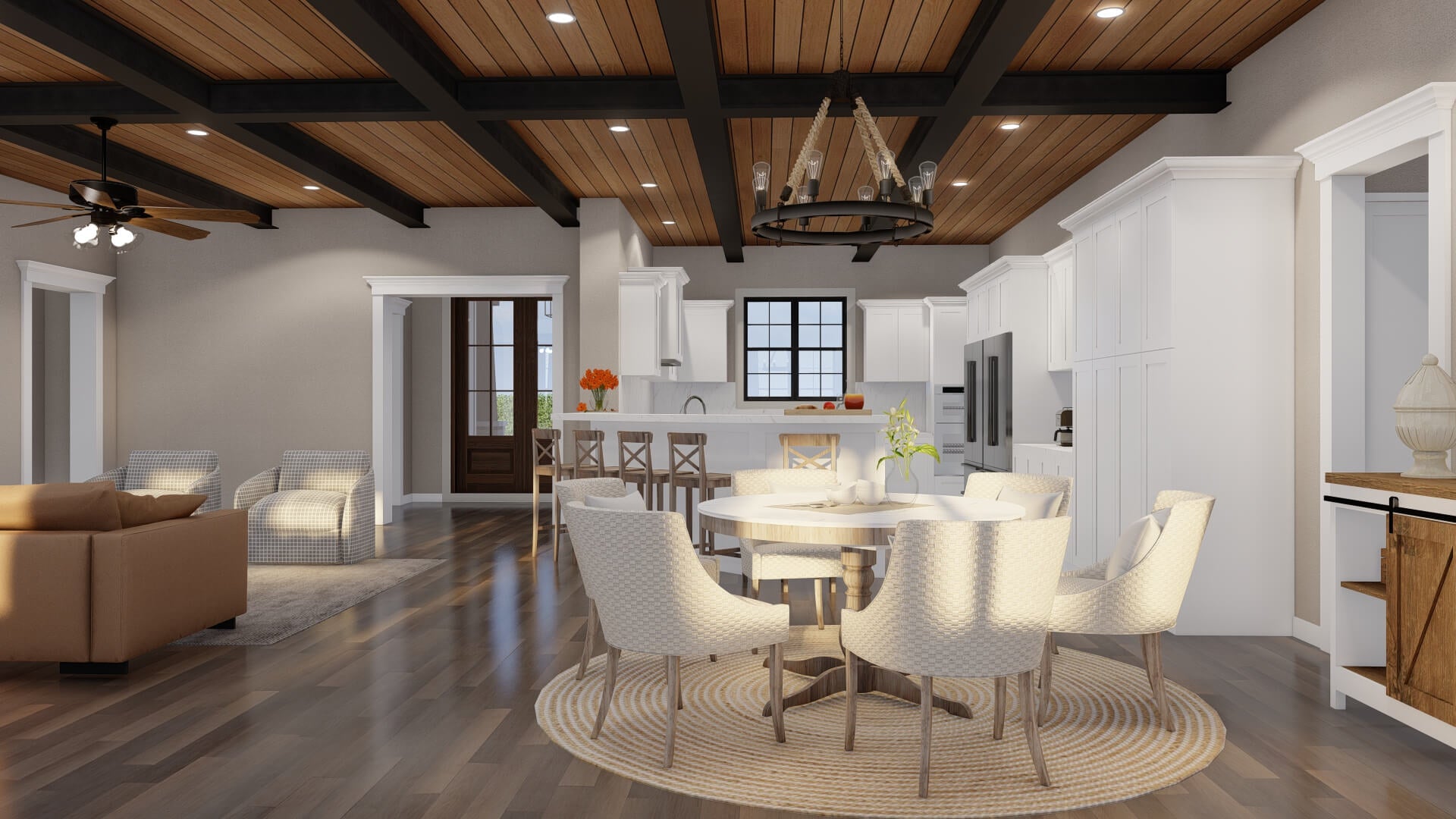 - Single‑story layout (~3,106 sq ft) designed for expansive yet efficient living