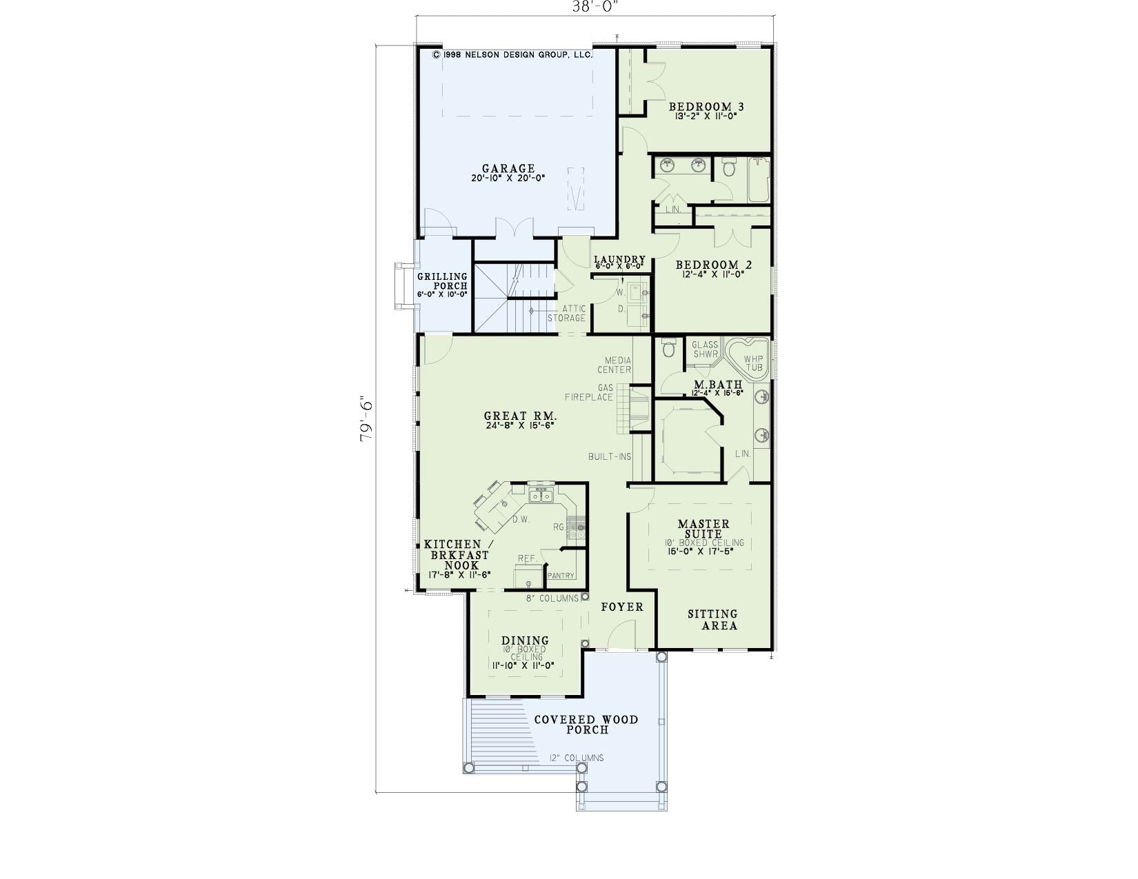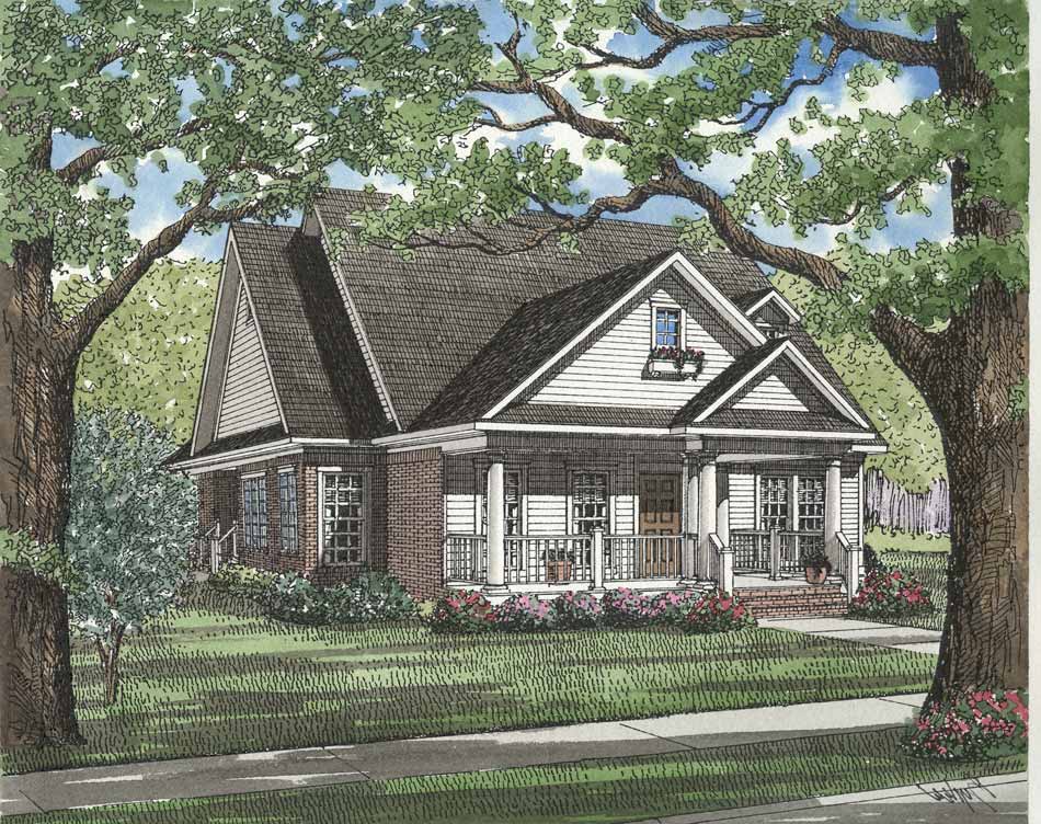 This home has the amenities of Traditional Neighborhood Design, all with a southern flair. A well-crafted and spacious covered front porch leads you to a foyer opening to an elegant dining room enhanced by eight inch columns and a ten foot boxed ceiling. Traveling down the hall, enter an incredibly spacious great room with fluid entry to the kitchen and breakfast nook. A rear side grilling porch is accessible to the great room as well. Three large bedrooms, including a private master suite, complete the design.