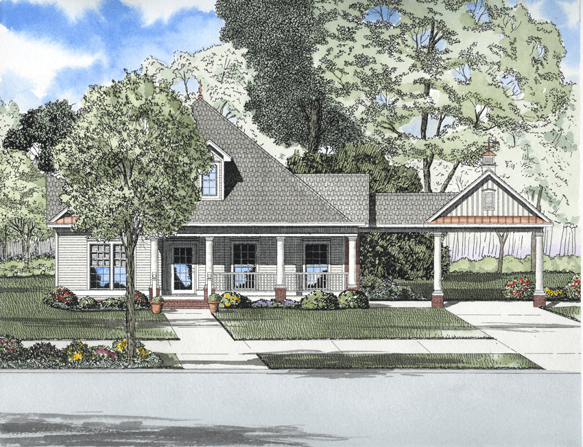 This Nelson Design Group home plan promotes family unity, inside and out. Columns line the front porch and are also used inside to add elegance to the interior. A great room with computer niche, media center and cozy fireplace will be a favorite place for family to relax while an elaborate kitchen with large walk-in pantry and adjoining dining room form the heart of the home. A kid’s nook near the grilling porch provides a place to de-clutter, while the privately placed master suite and spectacular bathroom is hidden at the rear of the home.