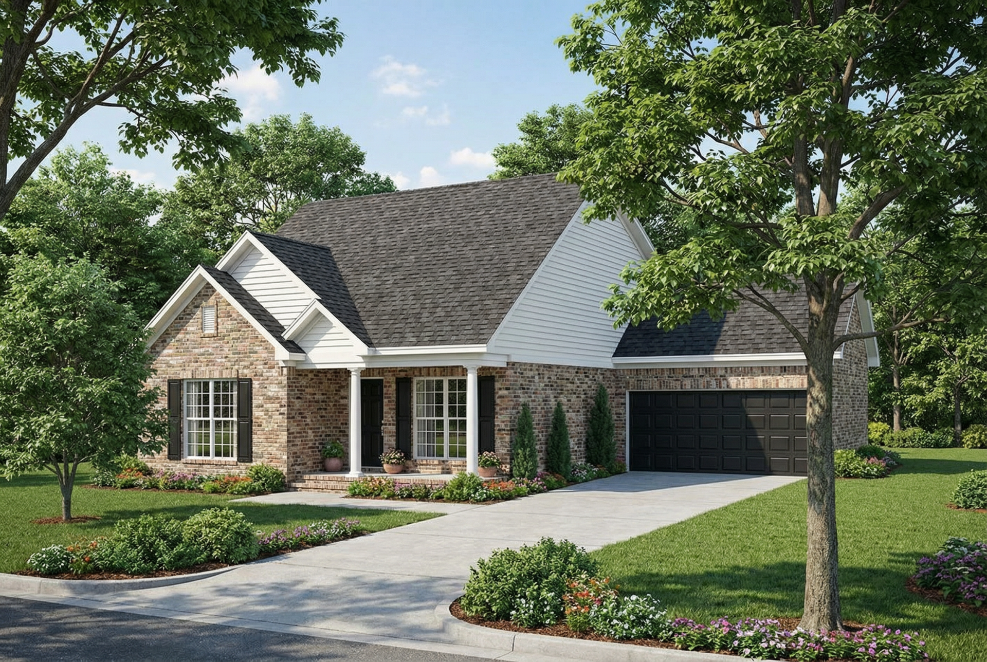 House Plan 291 Wellington Lane is a classic and inviting choice among house plans designed for practical, comfortable everyday living with timeless curb appeal. This thoughtfully laid‑out one‑story home offers approximately 1,312 sq. ft. of living space with three bedrooms and two full baths, making it ideal for small families, first‑time homeowners, or those looking to downsize without sacrificing functionality. A welcoming covered front porch with traditional columns sets the tone for Southern charm, while the open interior floor plan creates a smooth flow from the great room to the dining area and kitchen—perfect for daily living and relaxed gatherings. The private master suite enhances daily comfort, and additional bedrooms provide versatility for guests, home office space, or creative use. With a two‑bay front‑load garage and thoughtful design elements throughout, this plan offers classic style and smart living in a manageable footprint.