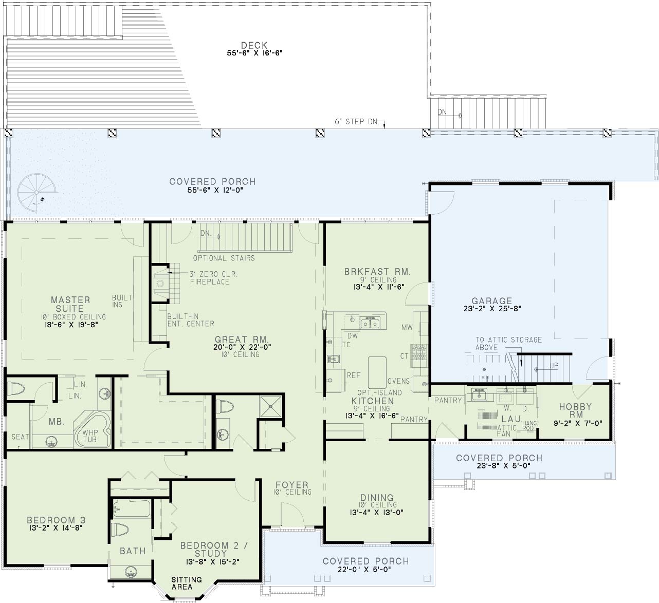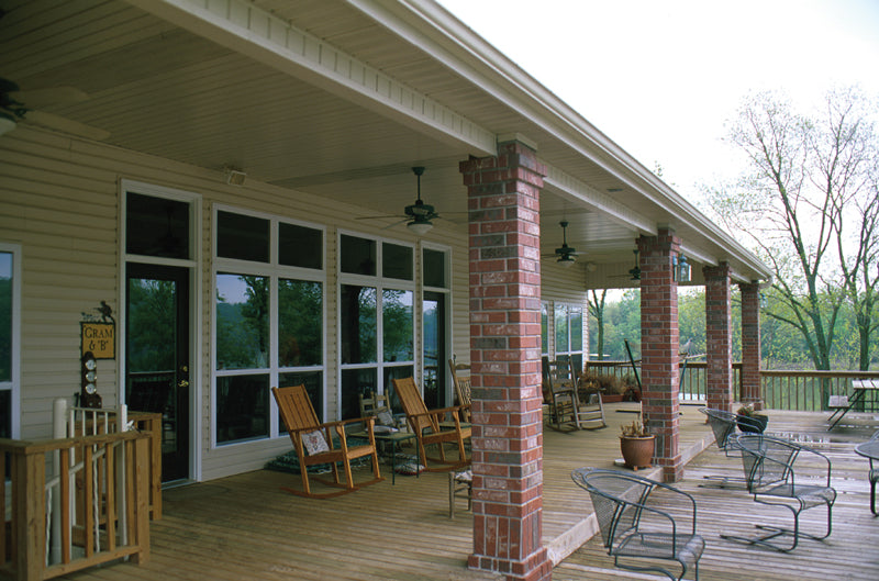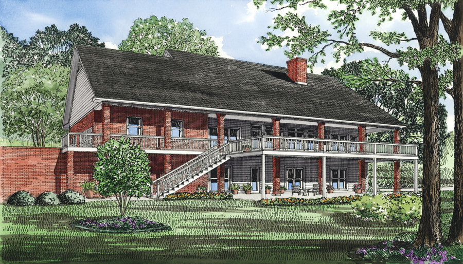 A traditional home with two front porches and boxed columns-perfect for lazy afternoons. This split bedroom plan offers mom and dad just enough privacy. The master suite is complete with built-ins, boxed ceilings and access to the rear covered porch for romantic evenings. Entertaining is easy in your spacious great room with soothing fireplace. A hobby room off the garage is useful for the kids and adults. Downstairs, you’ll find an optional bedroom with a great view of the lake The massive deck and covered porch give this plan a five star rating.