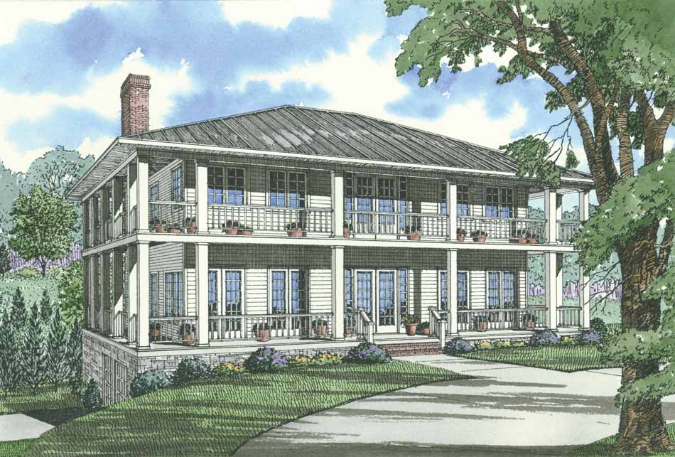 French doors and wraparound porch add a touch of southern flair to this vacation home. Grandeur and elegance are radiated throughout this design. The first floor features the library with surrounding bookshelves, a formal dining room with access to the kitchen. The kitchen with island bar and breakfast room make entertaining a breeze. Spend quality time with family in front of the cozy fireplace in the living room or find time for yourself in the Master suite complete with French doors to the balcony, fireplace and a spacious master bath and huge his, and her, walk-in closets. The kids will love their own expansive bedrooms with French doors to balcony and full baths.A convenient laundry room upstairs completes this design.