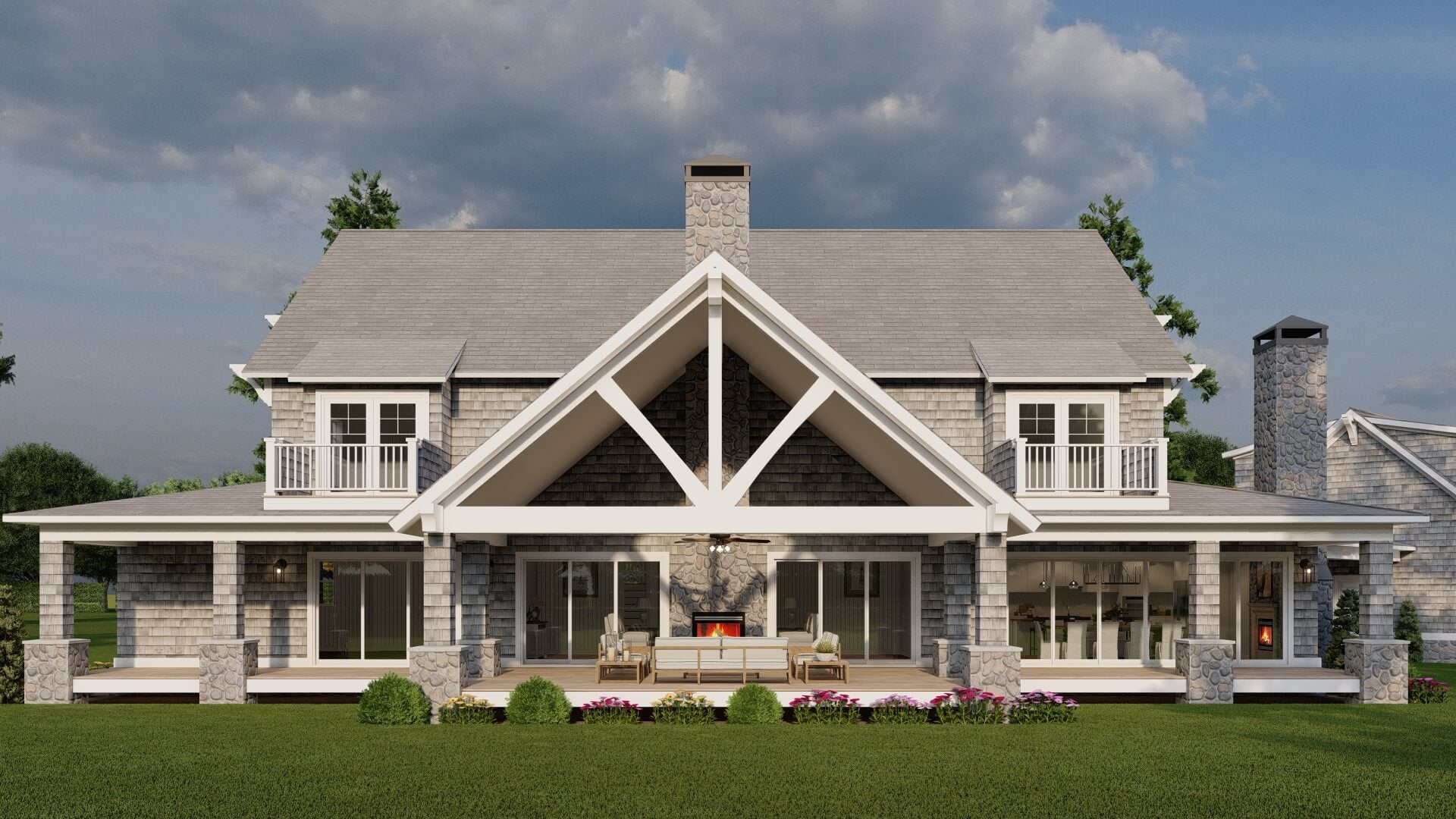 - Covered porches and deck spaces that enhance outdoor living and connection to nature