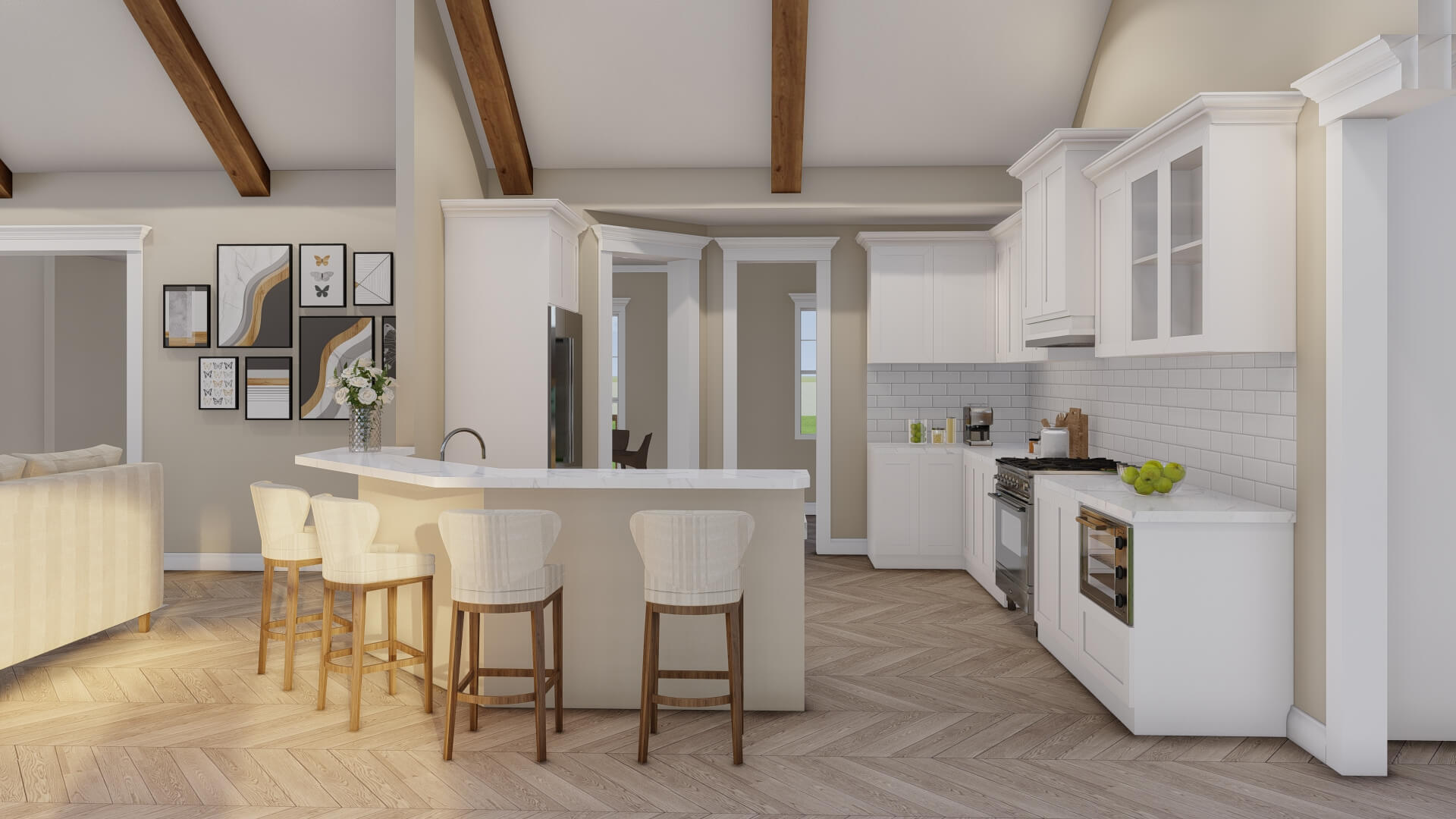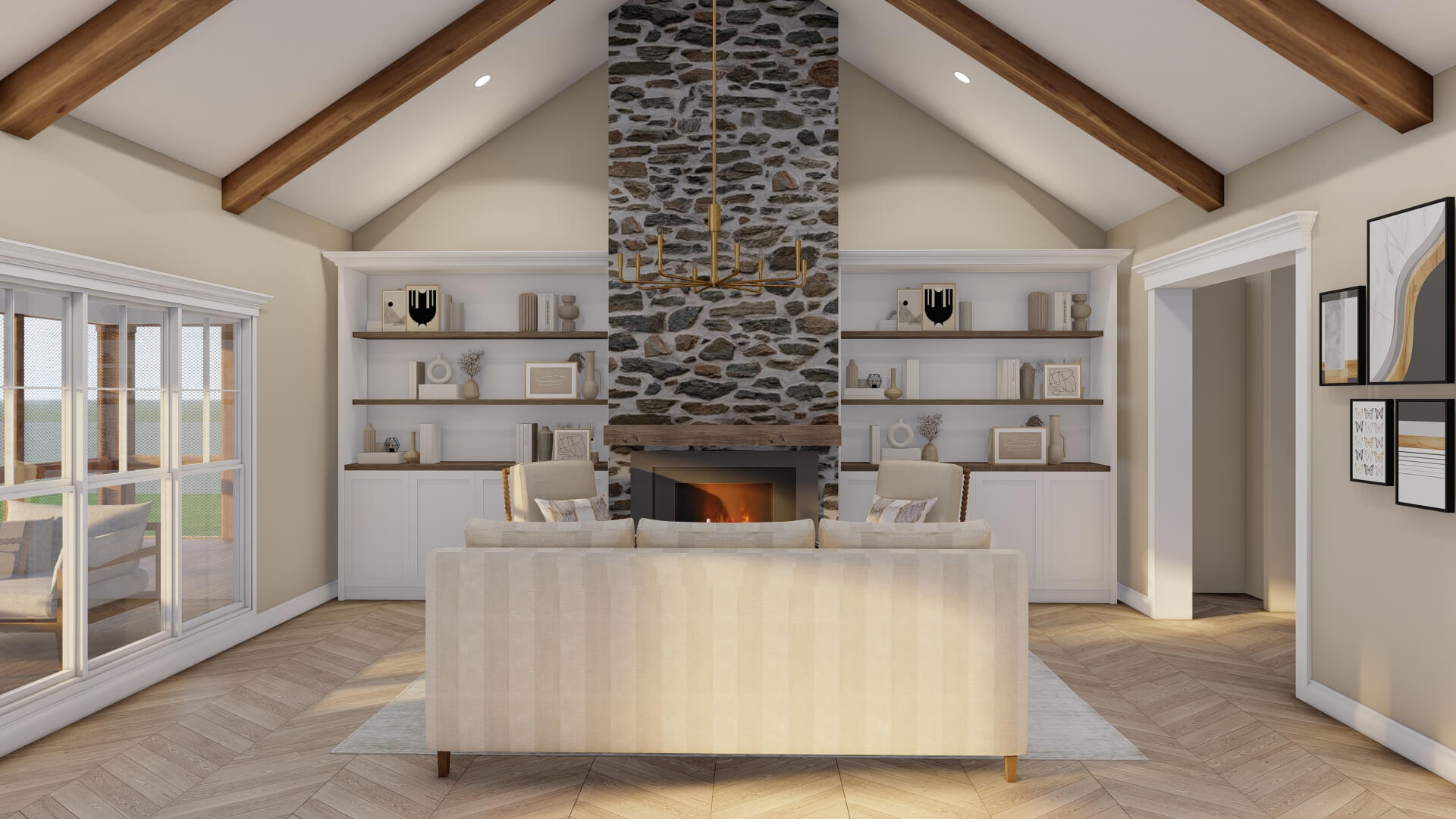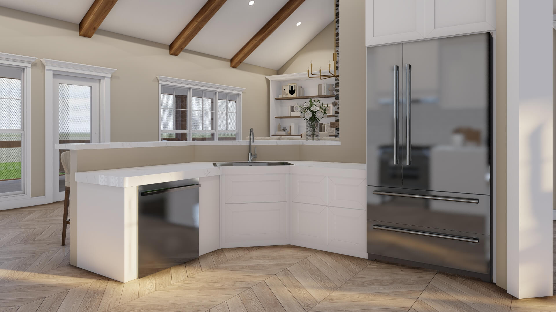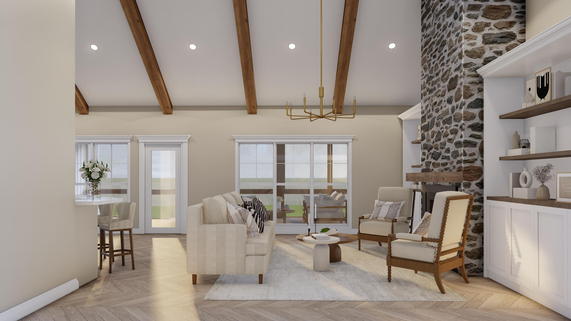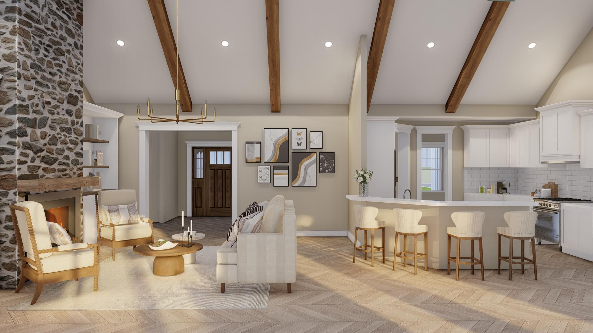 - Modern farmhouse architectural style with classic elements and contemporary flow