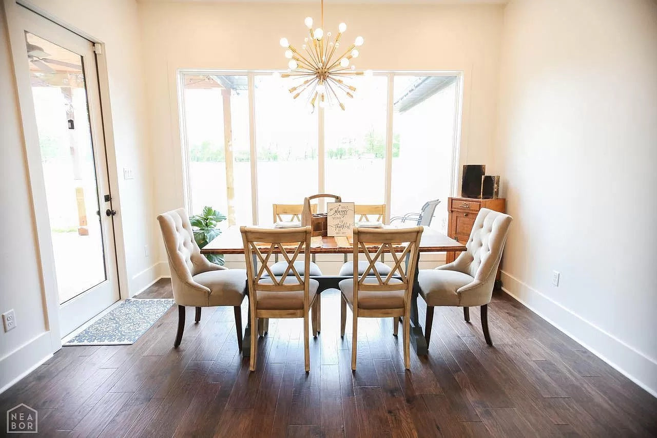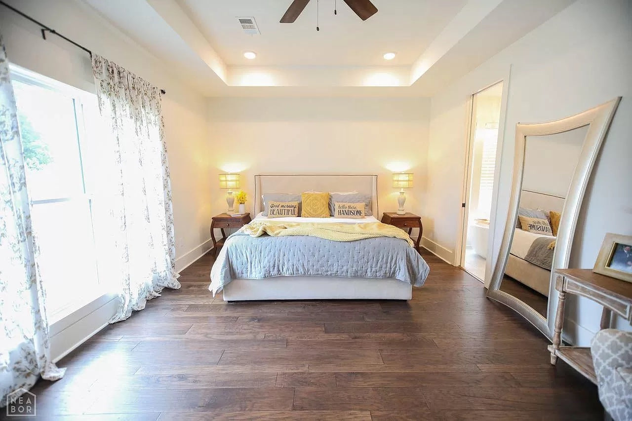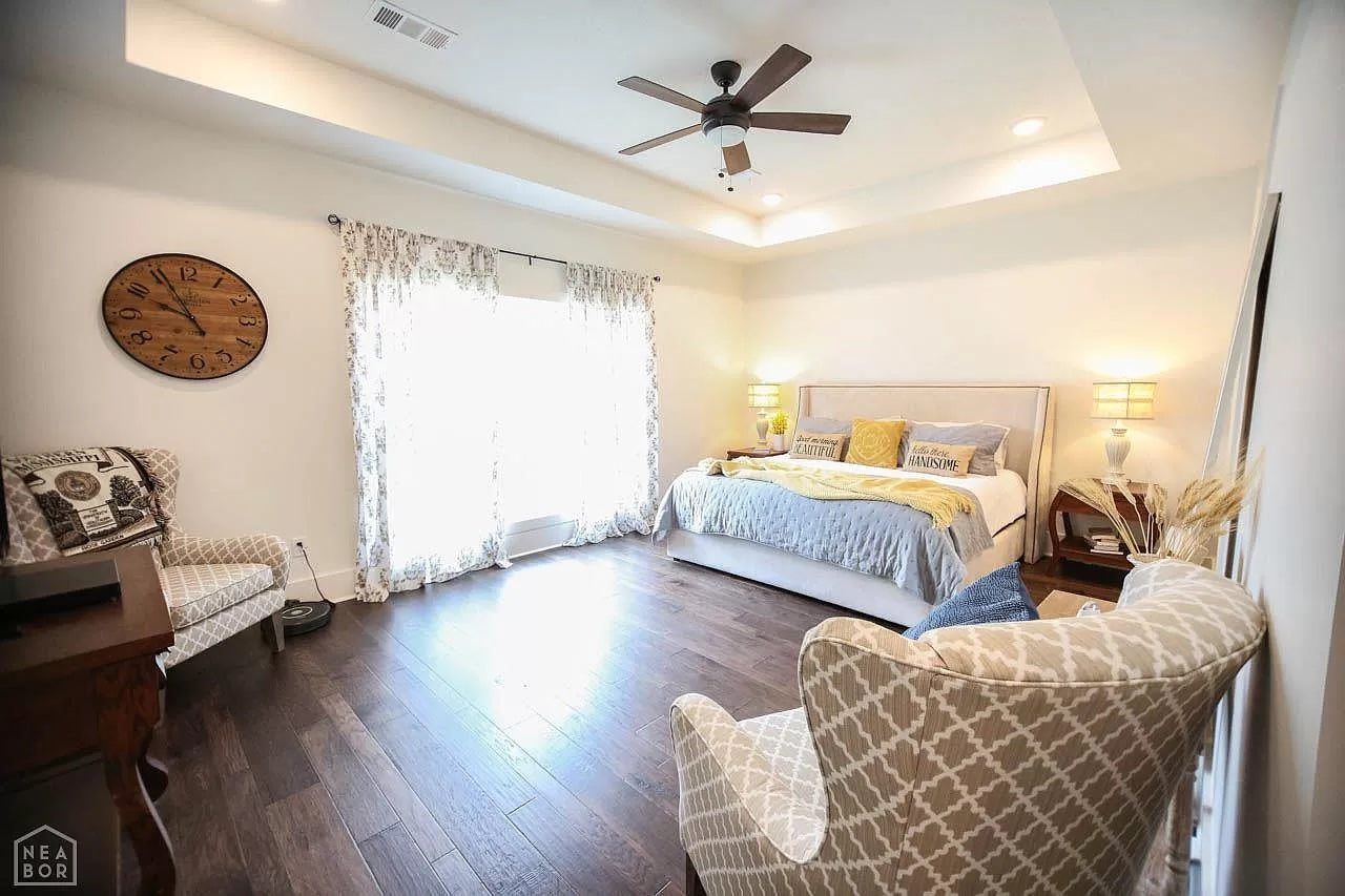 Step through the inviting front porch into a spacious foyer that opens into the great room, kitchen, and dining area. The open floor plan encourages effortless entertaining and daily comfort, while the large kitchen island, walk-in pantry, and dining space create a natural flow for family gatherings. Two secondary bedrooms share a convenient Jack-and-Jill bath on one side of the home, while the private master suite occupies the opposite wing for total tranquility.