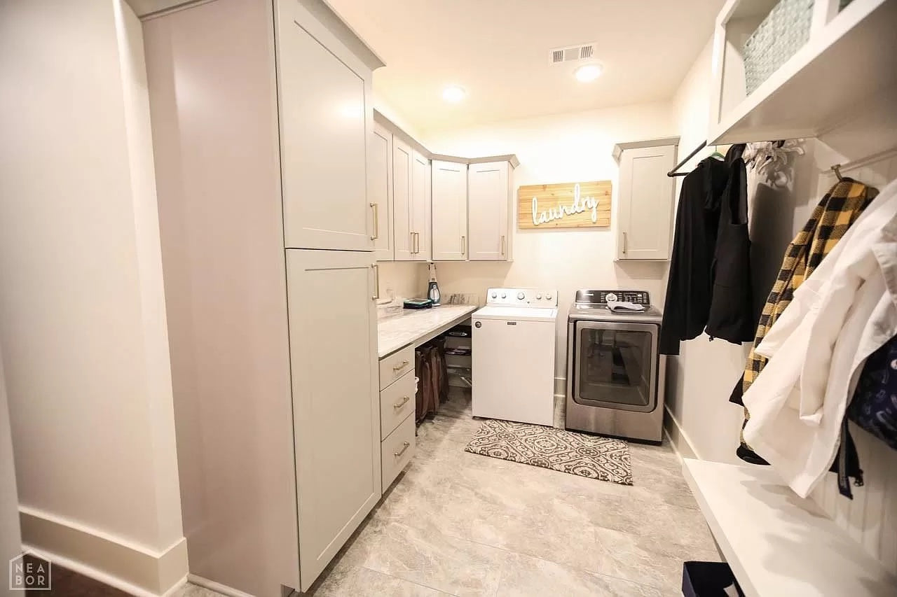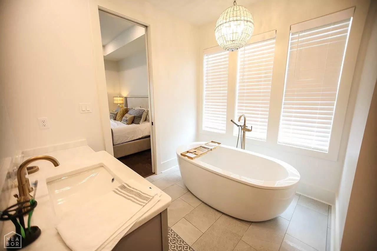 Inside the master suite, you’ll find a spa-like bath with his-and-her vanities, a freestanding soaking tub, walk-in glass shower, and an expansive closet with direct access to the laundry room — a smart design feature that simplifies everyday living. The optional upstairs bonus room with a full bath offers additional space for a home office, guest suite, or recreation area.