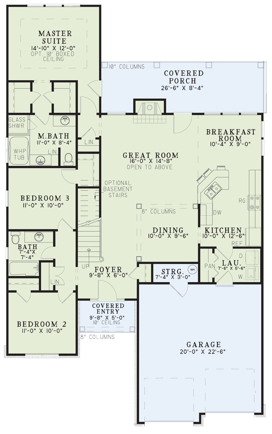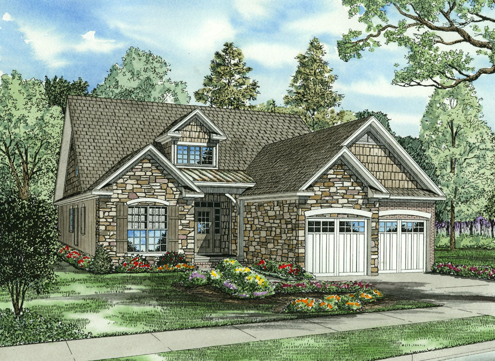 Stone and cedar create a unique exterior featured on this Nelson Design Group home. The great room and dining room merge with columns in between, and are just steps away from the convenient kitchen. This split plan design offers the best for everyone-privacy for all family members as well as ample space. Upstairs, find another bedroom, bathroom, and a built-in computer center, as well as the option of a home theater to enjoy with your family for years to come.