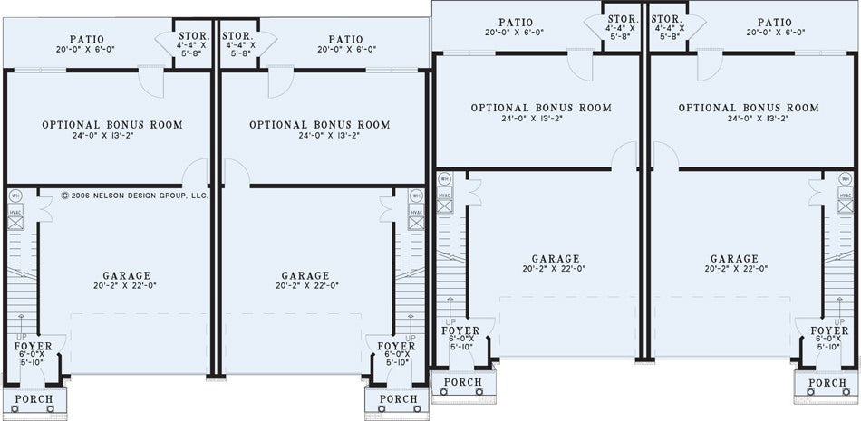 This multi-family plan offers 1876 square feet of living space per unit. The first floor features a great room with a fireplace, kitchen with an island bar and dining room. Upstairs are 3 bedrooms and 2 full bathrooms. There’s an optional bonus room downstairs.