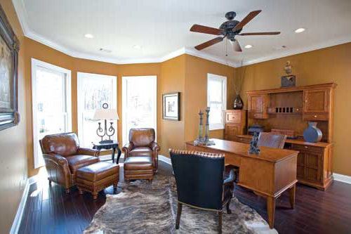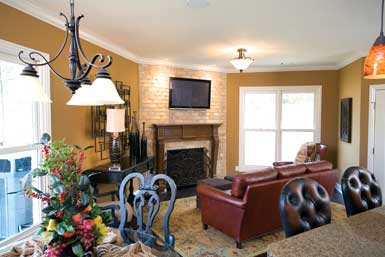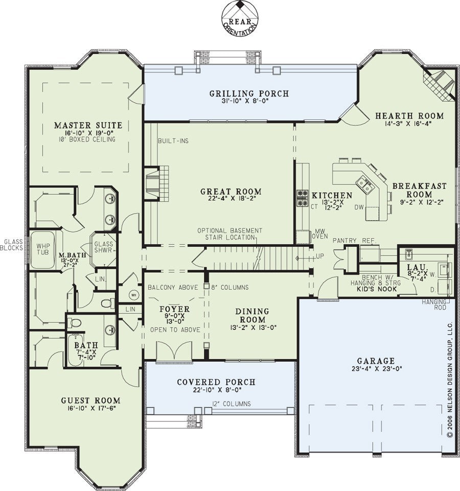 The interior of this Nelson Design Group home is as as the exterior. Guests will feel at home in the private guest room with bay window. Entertaining is easy with this kitchen! The adjoining breakfast and hearth rooms and the nearby dining room create endless options. The master suite, privately located, is elegantly adorned with a box ceiling while the master bath sports a whirlpool bath and two large walk-in closets. The upper level houses two theater balconies, a bonus room, and two bedrooms.