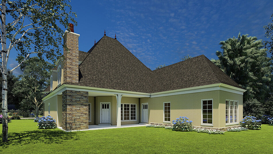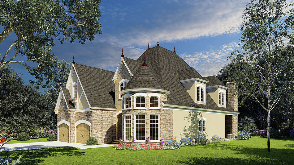 A stunning addition to our European House Collection, St. Murelle is the house plan that will add luxury to your narrow lot! Stone and brick mix nicely to create the beautiful rich exterior of the European style house plan. You’ll appreciate the open feel of the Great Room and the arched openings that lead into adjoining rooms and hallways. The well-equipped Kitchen is located centrally between the Breakfast Room and Dining Room for the ultimate convenience, and an eat-at bar top allows for casual gathering with the cook. The Breakfast Room looks out onto the Outdoor Living Porch, where you can spend pleasant evenings in front of the fireplace, accentuated by a stone hearth.