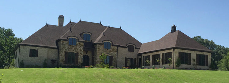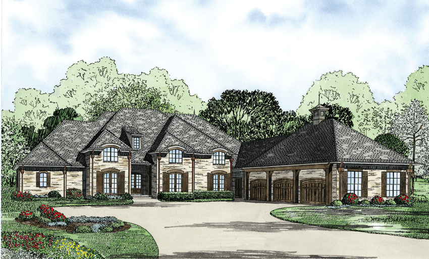 - Elegant European/French-Country exterior, featuring sophisticated rooflines and timeless architectural details