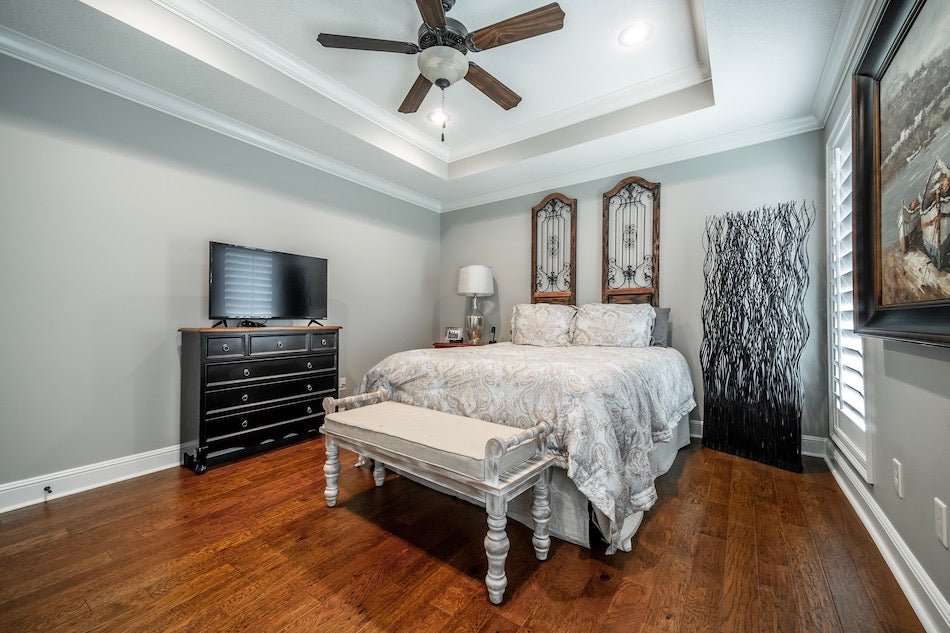 - Private master suite with a large walk-in closet, dual-sink vanity, and a relaxing whirlpool/shower combination