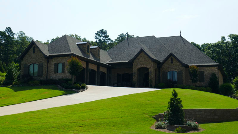 - Grand entry with an arched covered porch, accented by stone siding and wood framing, for impressive curb appeal