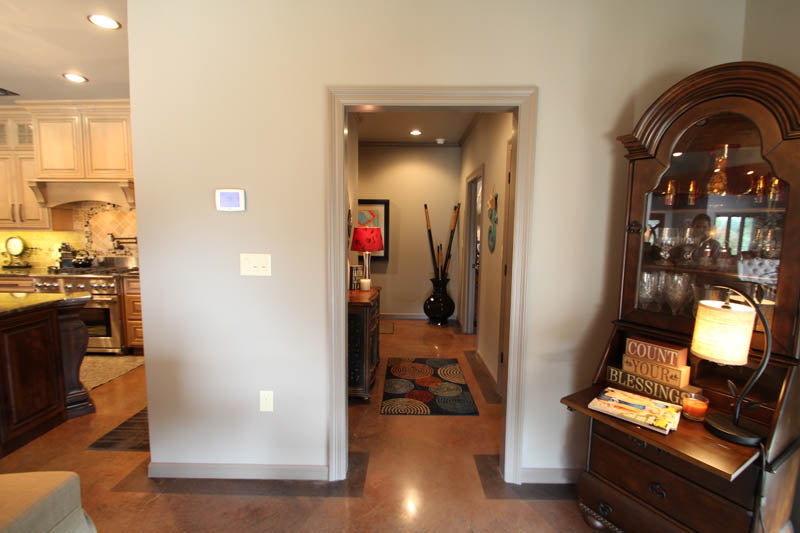 Once you get into the foyer, you’ll be awed by the ambiance and serenity of the massive great room. A vaulted ceiling, sky windows and a glowing front entry blend perfectly with the high-pitched roof lines. The fireplace in the great room features built-ins on either side and warms the kitchen and dining room.
