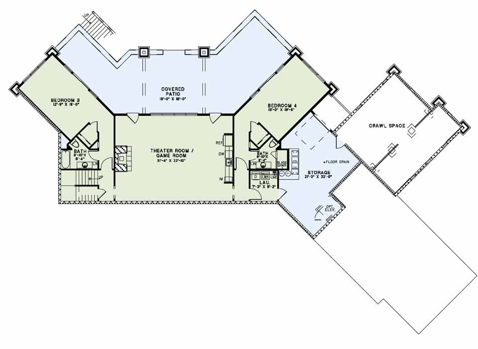 The theater/game room completes the other side of the Cabana plan. Family and friends are sure to enjoy the fireplace and mini-kitchen at the game room.