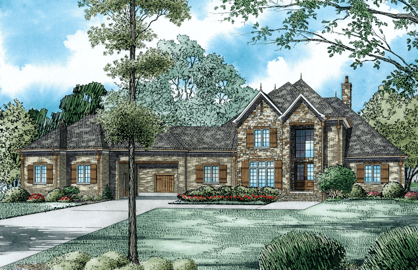 Experience the refined combination of European architectural charm and contemporary layout with Whispering Cove (Plan NDG 1407). Offering an impressive 4,949 sq ft of living space, this design showcases spacious luxury, thoughtful organization, and exceptional outdoor connectivity.
