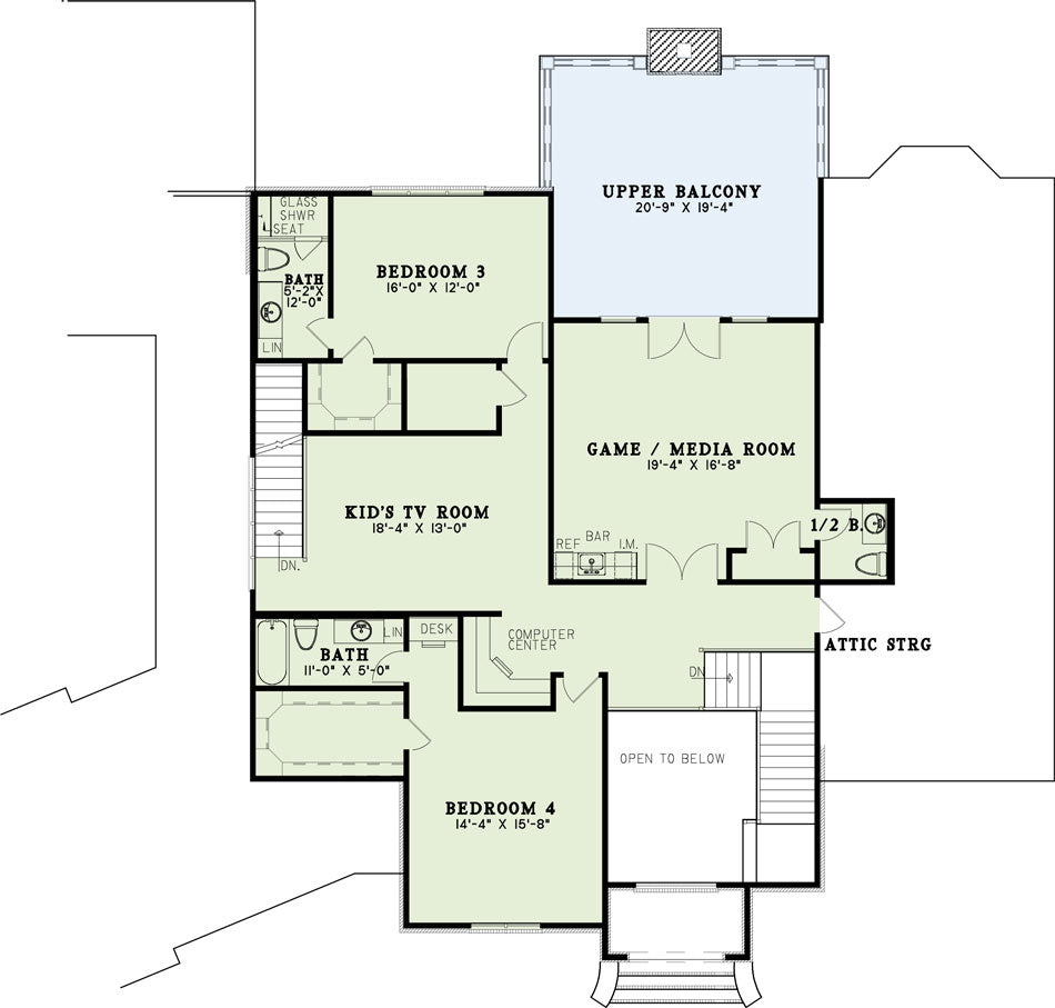 Upstairs, two more bedroom suites each come with walk-in closets and full bathrooms. Additional features include a kids’ TV area, computer nook, and a large media/game room with a bar and half bath—all opening onto a spacious balcony.