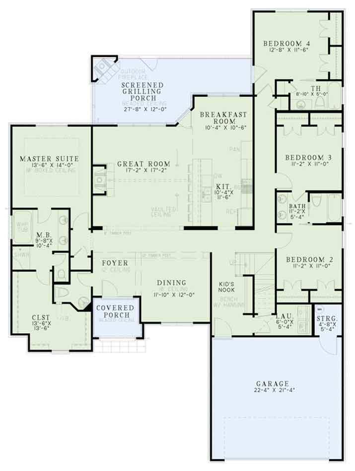 - Open floor plan connecting Great Room, kitchen with large eat‑at bar, and breakfast area — fosters easy flow and social interaction.