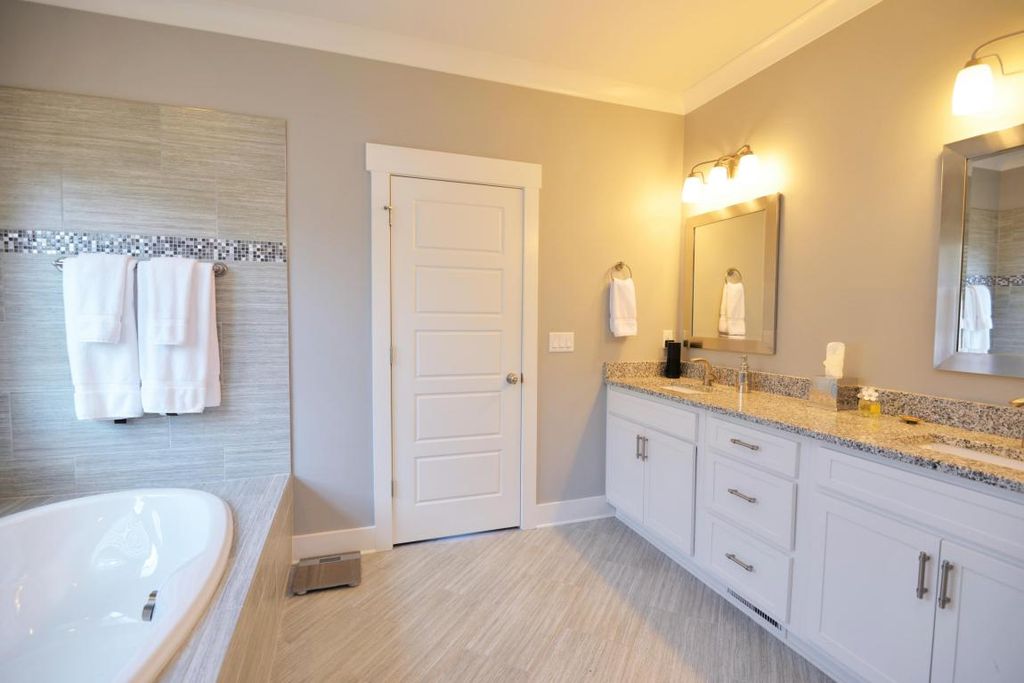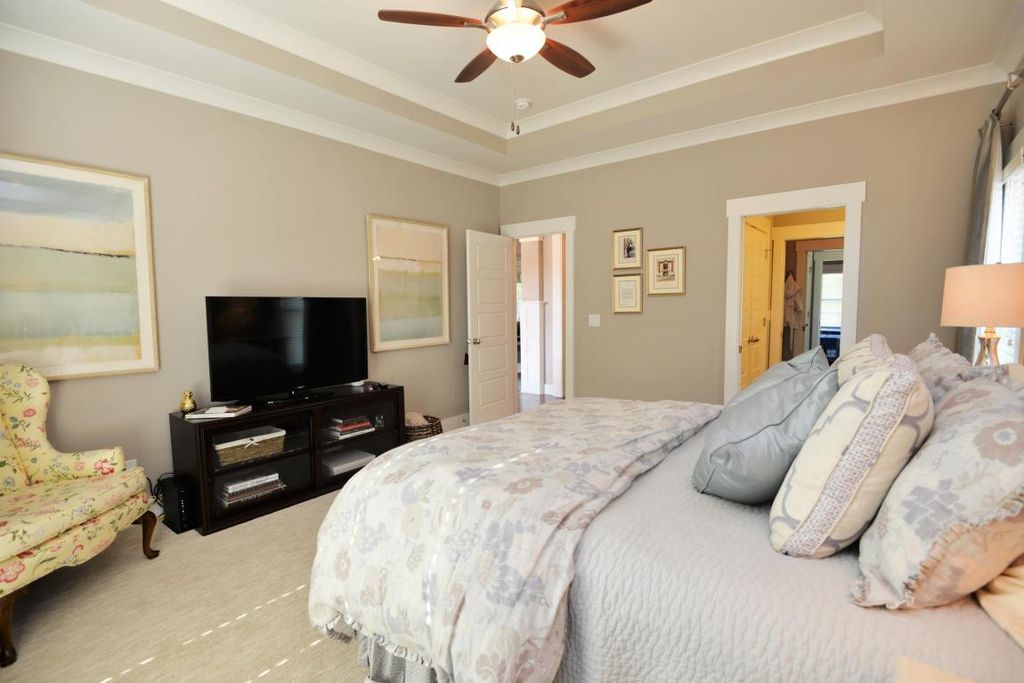 - Spacious master suite with vaulted ceiling, dual‑vanity bath, corner glass shower, whirlpool tub, and a generous walk‑in closet — designed for comfort and luxury.