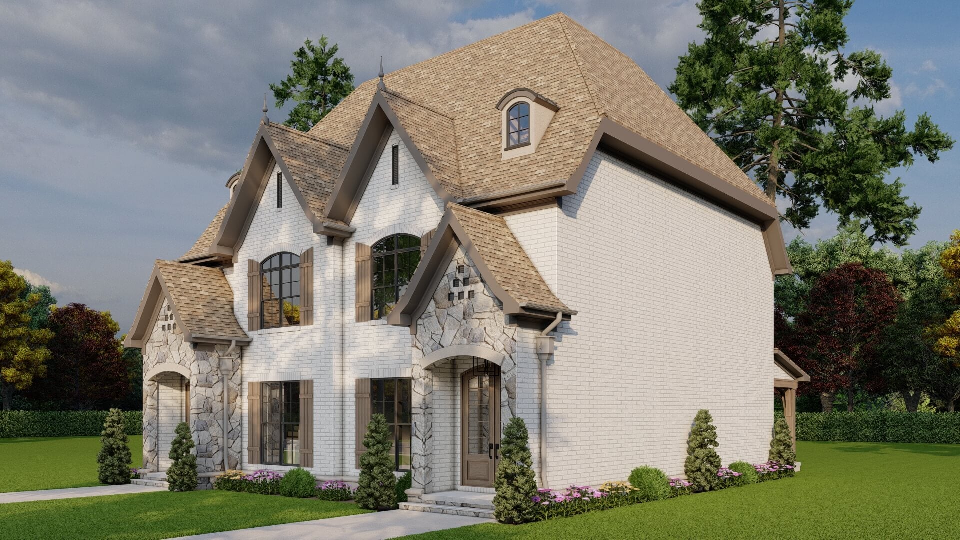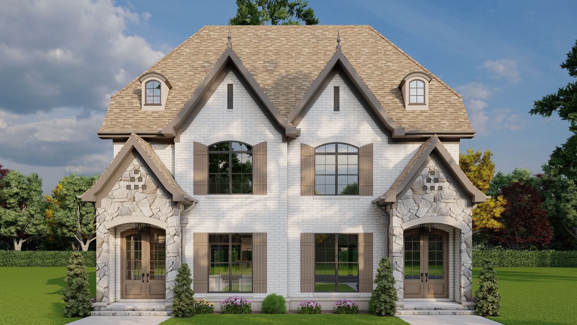- Attractive exterior with a covered front entry, arched detailing, and European-inspired brick and stone elements for strong curb appeal
