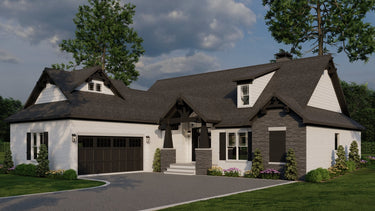 Keystone Lane features a striking façade with stone and timber accents, timber-beam gables, and a covered front porch that exudes rustic charm. These details create instant curb appeal and a warm, inviting presence.