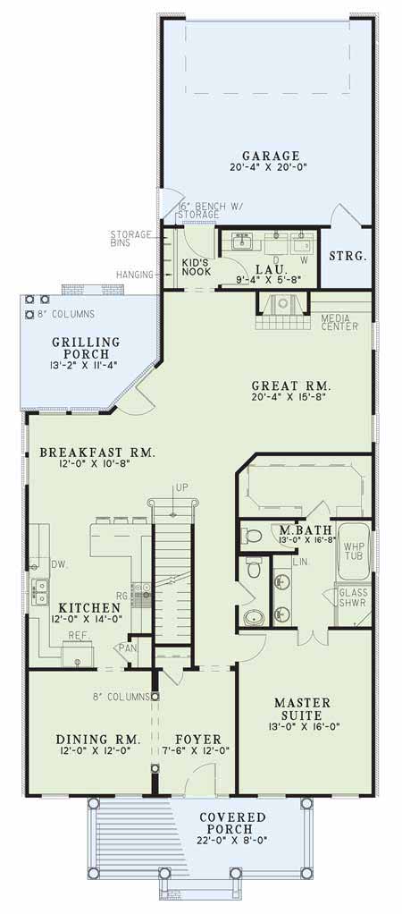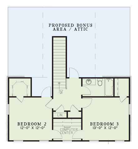 Images of traditional values come to mind with this quaint southern Nelson Design Group home. A delightful covered porch connects to a foyer leading you to a spacious dining area. The modern and efficient kitchen opens to a breakfast room, adjoined to a great room with fireplace and built-in media center. Accessible to both areas is a grilling porch providing the perfect atmosphere for entertaining. Up the stairs, you’ll find two bedrooms with eight foot ceilings that shares a computer center. This home also features a proposed bonus room designed as a convenient future recreation room.