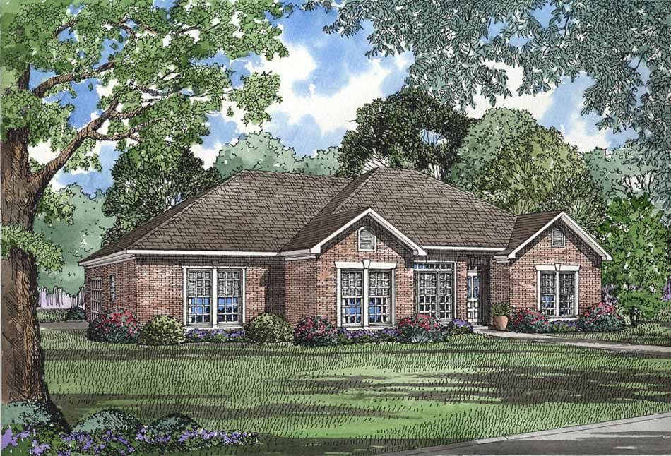 The entry of this split bedroom home shows off the sensational columns which frame the dining room. Romance the one you love by the fireplace in the comfortable great room with french doors accessing to the rear porch. Afterwards, retreat to your master suite and bath, complete with ‘his and her’ walk-in closets, double vanities and a wonderful whirlpool tub. Don’t worry about the children, they will be having dreams of their own in the bedrooms located on the opposite side of this home.