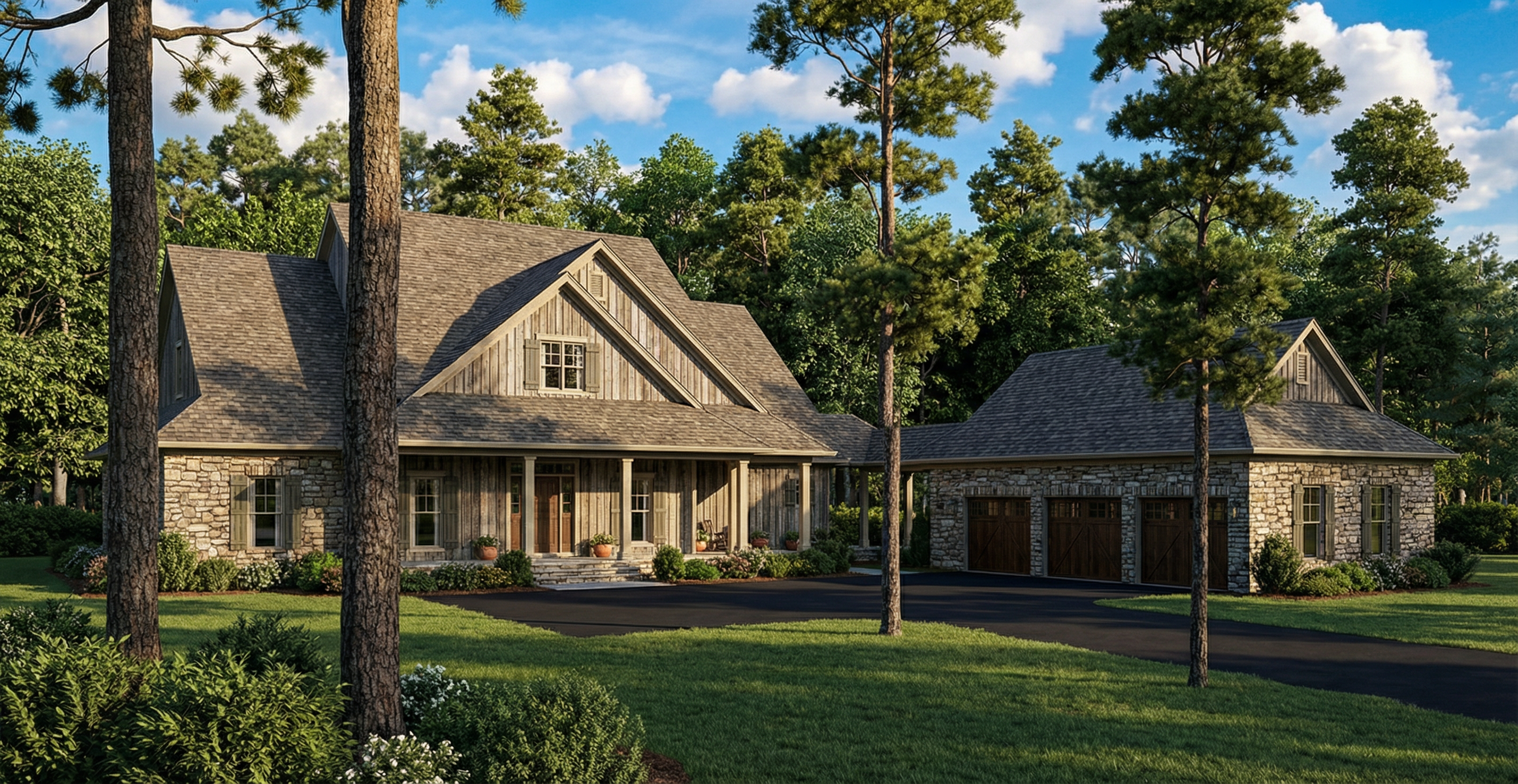 This thoughtfully planned design combines traditional Southern charm with modern functionality, anchored by strong natural elements of stone and wood siding that create exceptional curb appeal. A wide wrap‑around porch invites you inside where a spacious great room with a cozy fireplace and built‑ins becomes the heart of the home. The layout places the luxurious master suite on one side of the first floor for privacy, while additional downstairs bedrooms and a large home office offer flexible space for family life or work‑from‑home needs. Upstairs, a roomy game room/media center and additional bedrooms with window seats ensure everyone has room to relax and unwind.