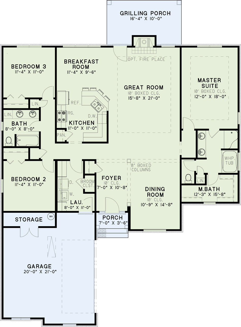 Welcome your dinner guests into this elegant home enhanced by ten foot ceilings and an open floor plan. Once in the foyer, notice the boxed columns separating the dining room and great room. The great room has a fireplace and door accessing the rear grilling porch which makes for entertaining ease. Two bedrooms and a full bath are located on the side of the house, allowing the master suite total privacy. This large master bedroom has plenty of wall space for large furniture and a master bathroom with whirlpool tub, double vanity, separate shower with seat, toilet room, and a walk-in closet. Enjoy this home with plenty of room for your family.