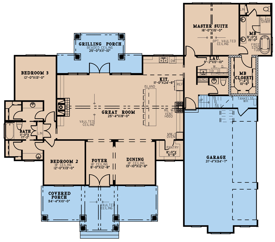 - Open concept living/kitchen/great room with vaulted ceilings and indoor-outdoor access