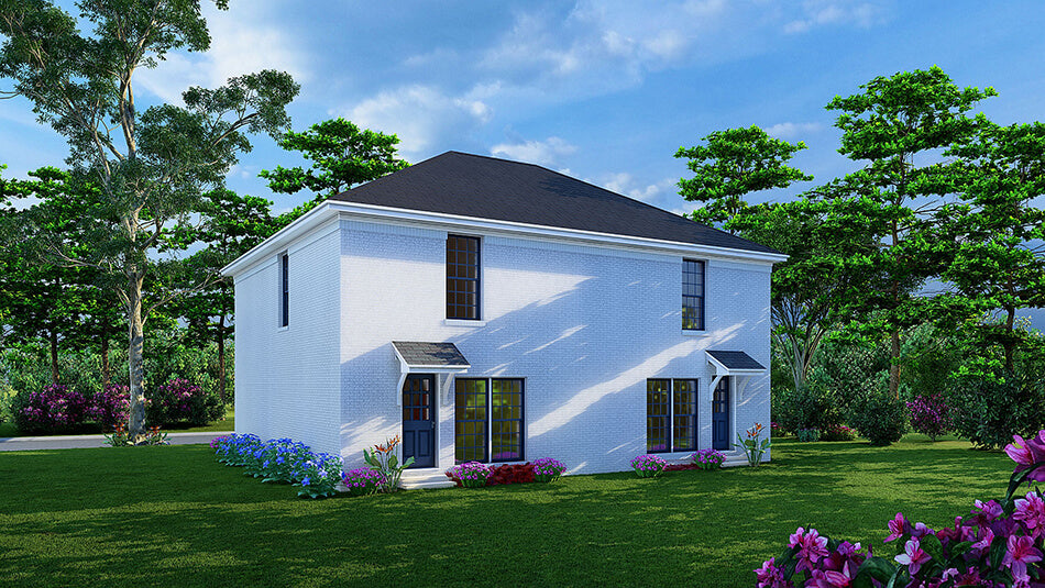 Discover smart multi‑family living with the Park Place House Plan MEN 5302, a well‑designed duplex offering two separate units, each featuring 3 bedrooms, 1 full bath and 1 half bath. With sleek white‑brick curb appeal, an open‑concept layout, and efficient space use, this plan is ideal for investment, shared living, or dual‑occupancy scenarios.