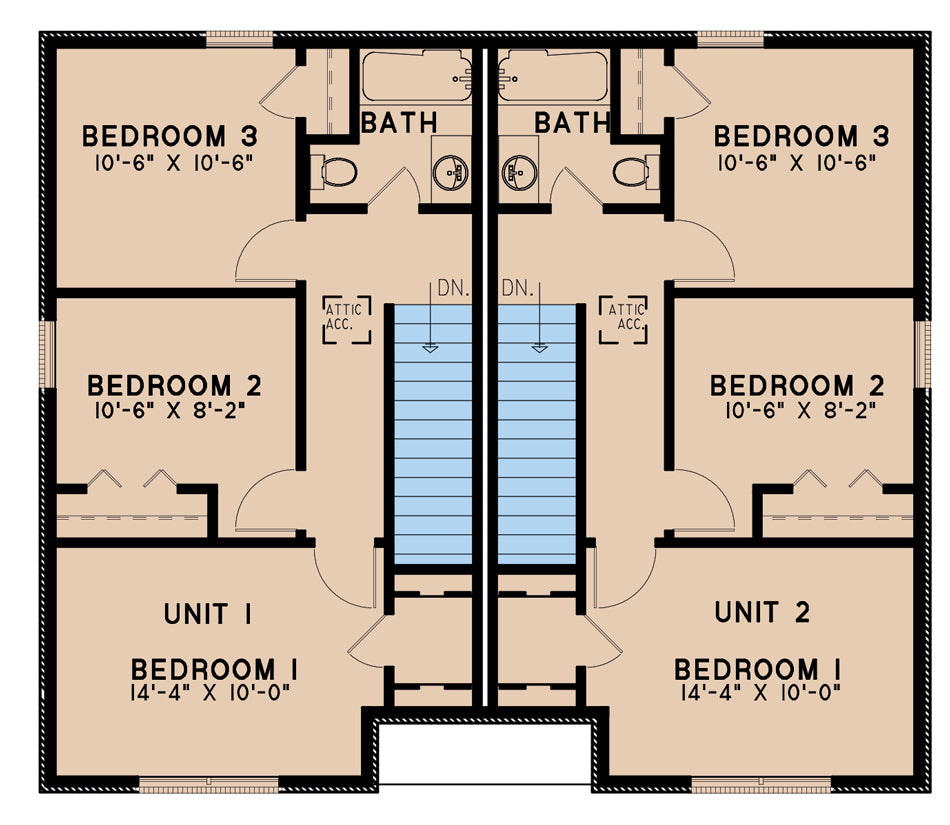 - Each unit: 3 bedrooms, 1 full bath, 1 half bath