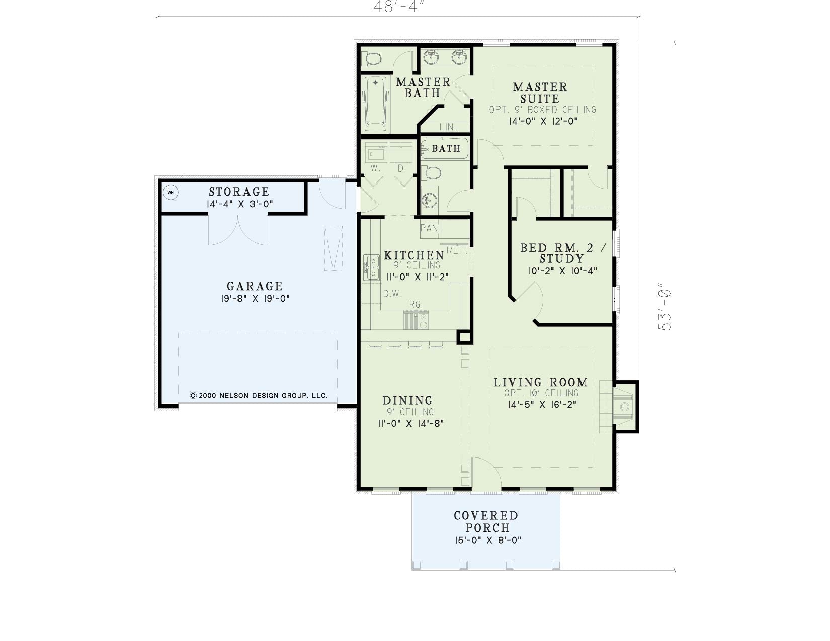 Enjoy warm summer evenings under the stars on the front porch of this home. Traveling inside you’ll feel the ambiance created by the intricate ten foot boxed ceiling in the living room and the elegance of the boxed columns leading to the dining room. The convenient kitchen with eat at snack bar is adjacent to the second bedroom or study. The master suite offers you a world of it’s own with spacious nine foot boxed ceiling, a large master bath complete with ‘his and her’ vanities and ample closet space. This Traditional Country design will make your dreams come true.