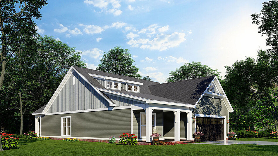 Embrace cozy living with the Cottage at Autumn Brooke House Plan from Nelson Design Group. This thoughtfully designed single-story home offers a perfect blend of modern amenities and classic cottage appeal, ideal for families or as a serene retreat.
