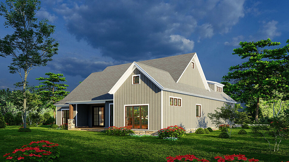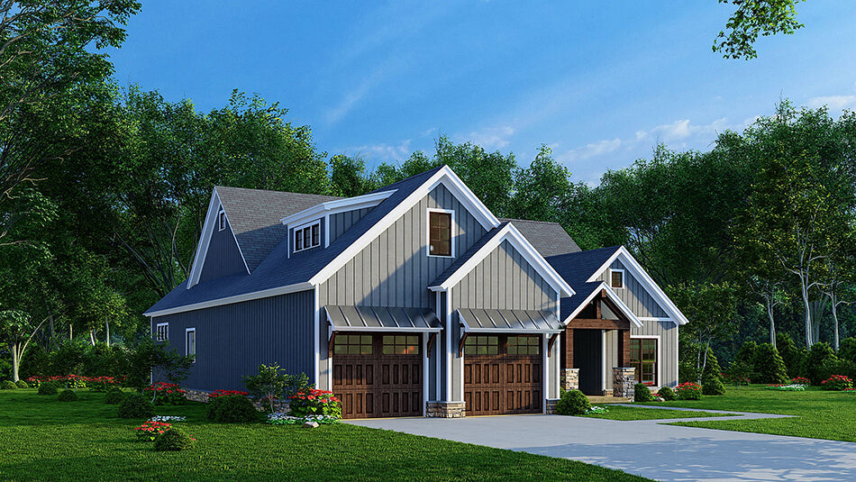The Whispering Creek Cottage House Plan MEN 5345 is a charming single-story home designed by Michael E. Nelson, offering 1,958 sq. ft. of living space with an additional 435 sq. ft. bonus room. This plan is ideal for families seeking a blend of rustic elegance and modern functionality.
