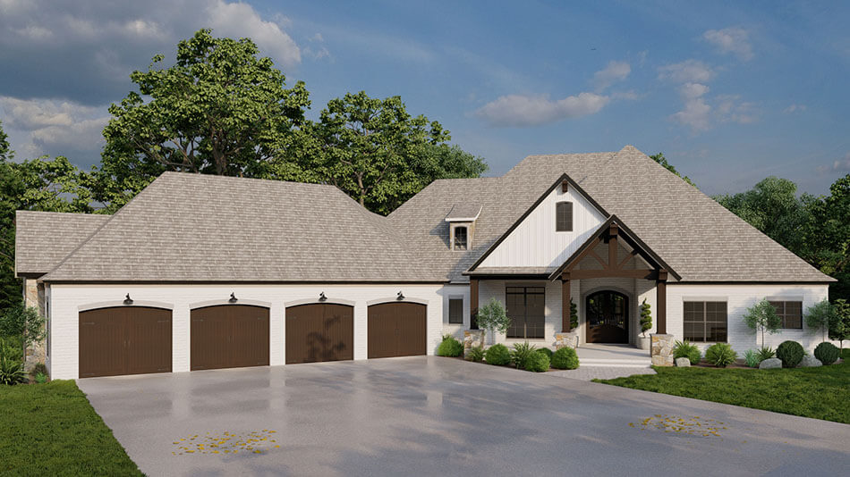 Experience the perfect blend of craftsman charm and modern functionality with House Plan 5379 – Timberstone Place. This 1½-story home offers approximately 4,231 sq. ft. of finished living space, featuring a spacious 4-car angled garage, open-concept living areas, and versatile spaces for family and entertaining.