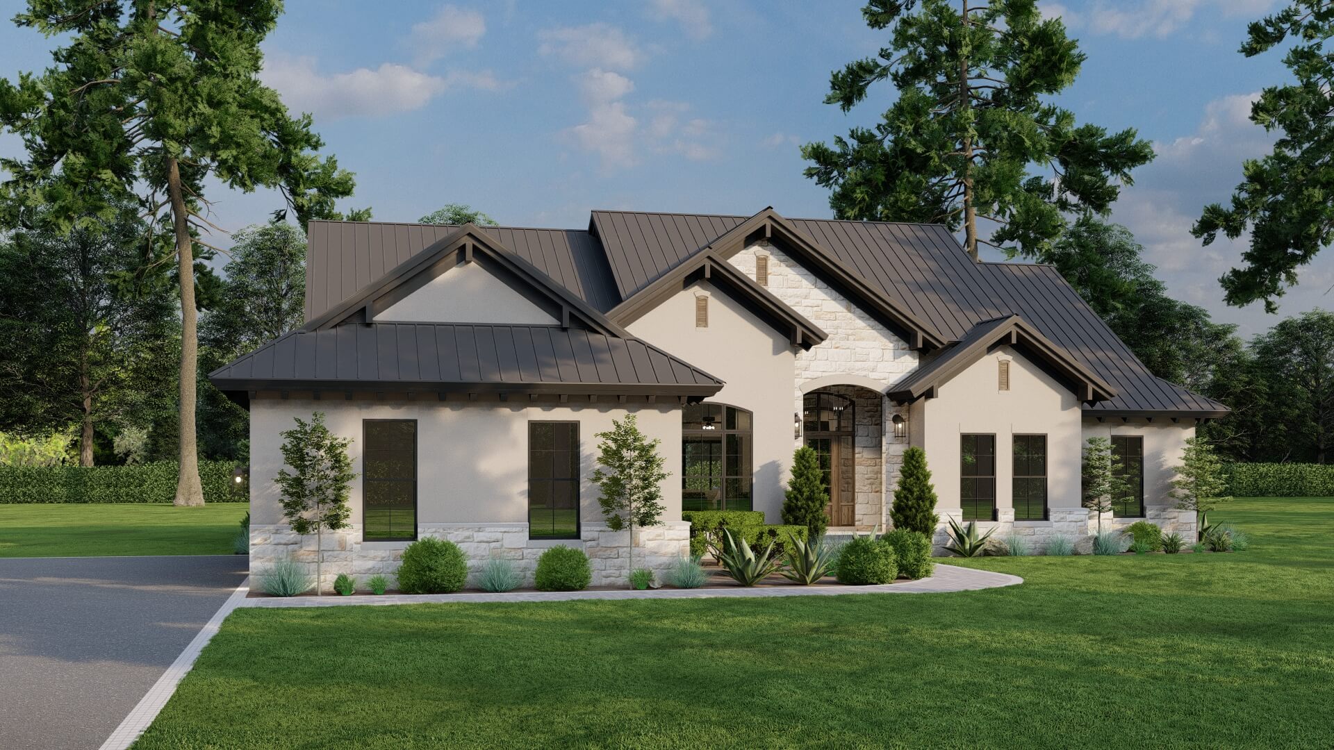 This home features a richly textured exterior with stucco and stone accents that reflect Tuscan and Mediterranean influences. At 66 feet wide by 68 feet deep, the footprint fits comfortably on many lots. The interior plan is designed for modern living, centered around an open great room that flows into the dining and kitchen areas. The layout is ideal for entertaining and comfortable family life. The master suite comes with luxurious amenities, and the additional bedrooms and bathrooms provide flexibility for guests, children, or a home office.